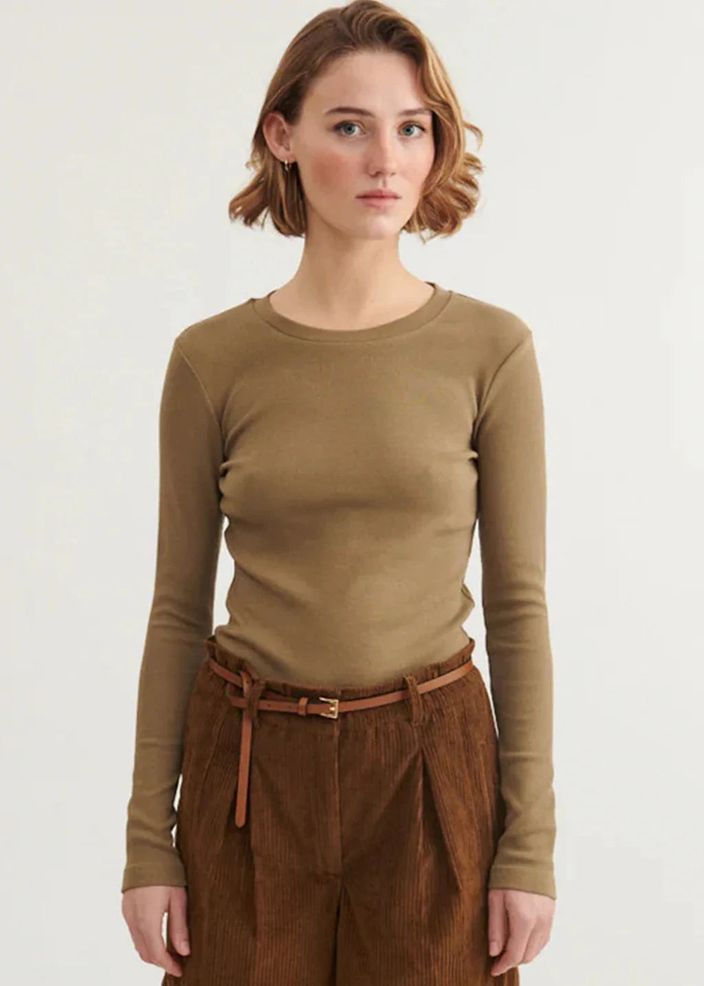 Pre-order uge 8. Basic Apparel Ludmilla LS Tee Capers green