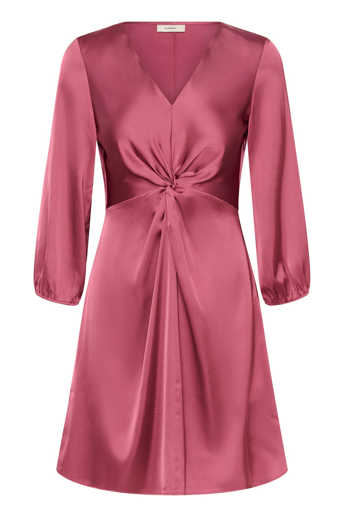 Fin kjole med v-udskæring fra Inwear. Kjolen har v-udskæring, drapering foran, og stumpede ærmer med elastik kant nederst.