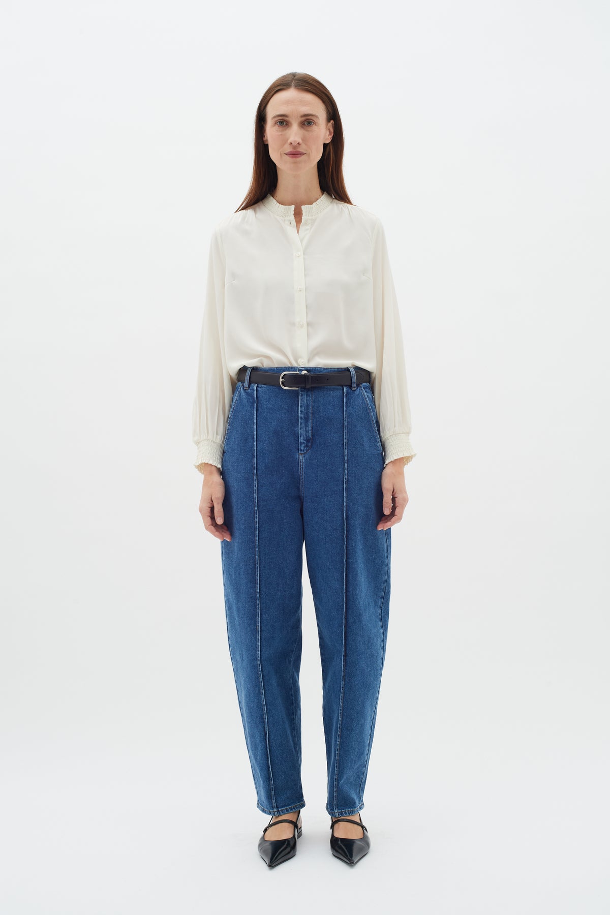 Cool medium blå jeans fra Inwear med barrel shape.