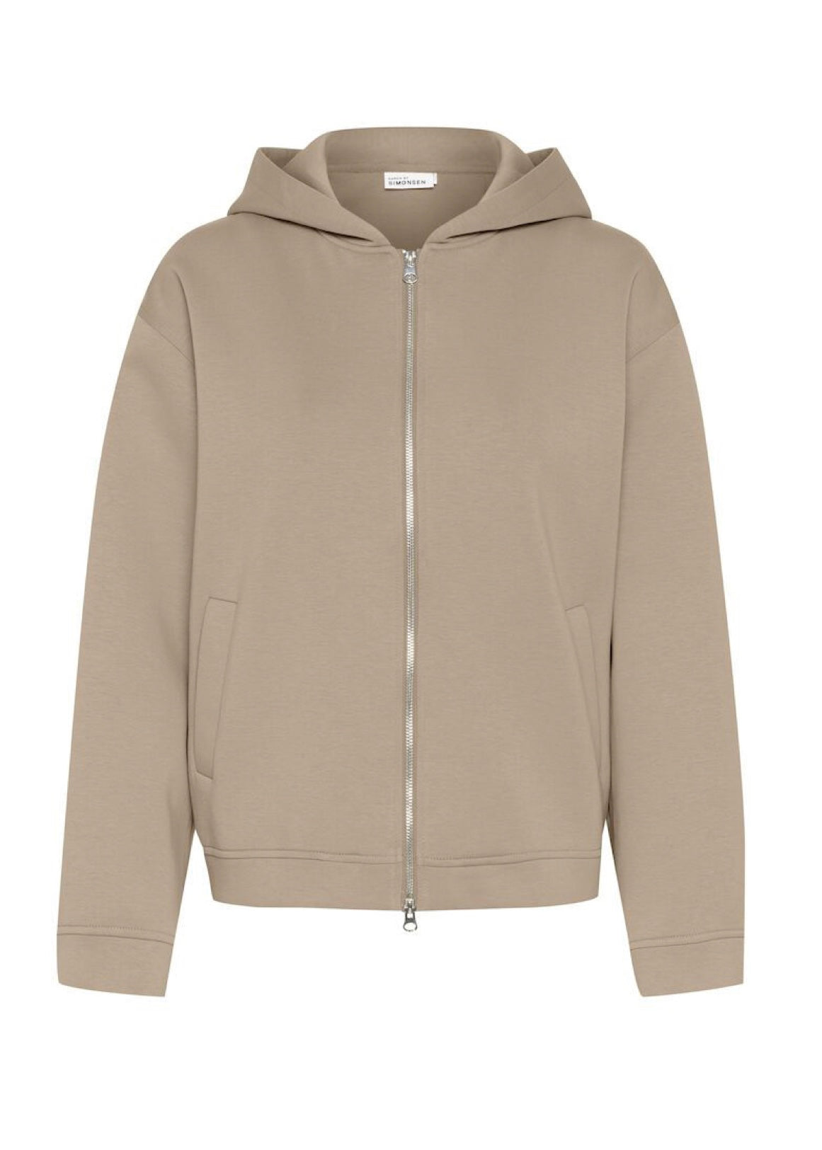 Lækker lysebrun oversize hoodie fra Karen by Simonsen. Hoodien har lyslås, sidelommer, hætte med snøre og en løs pasform.
