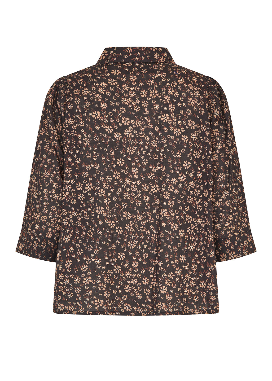 Feminin skjortebluse fra Lollys Laundry med krave, knapper foran og 3/4 lange ærmer.