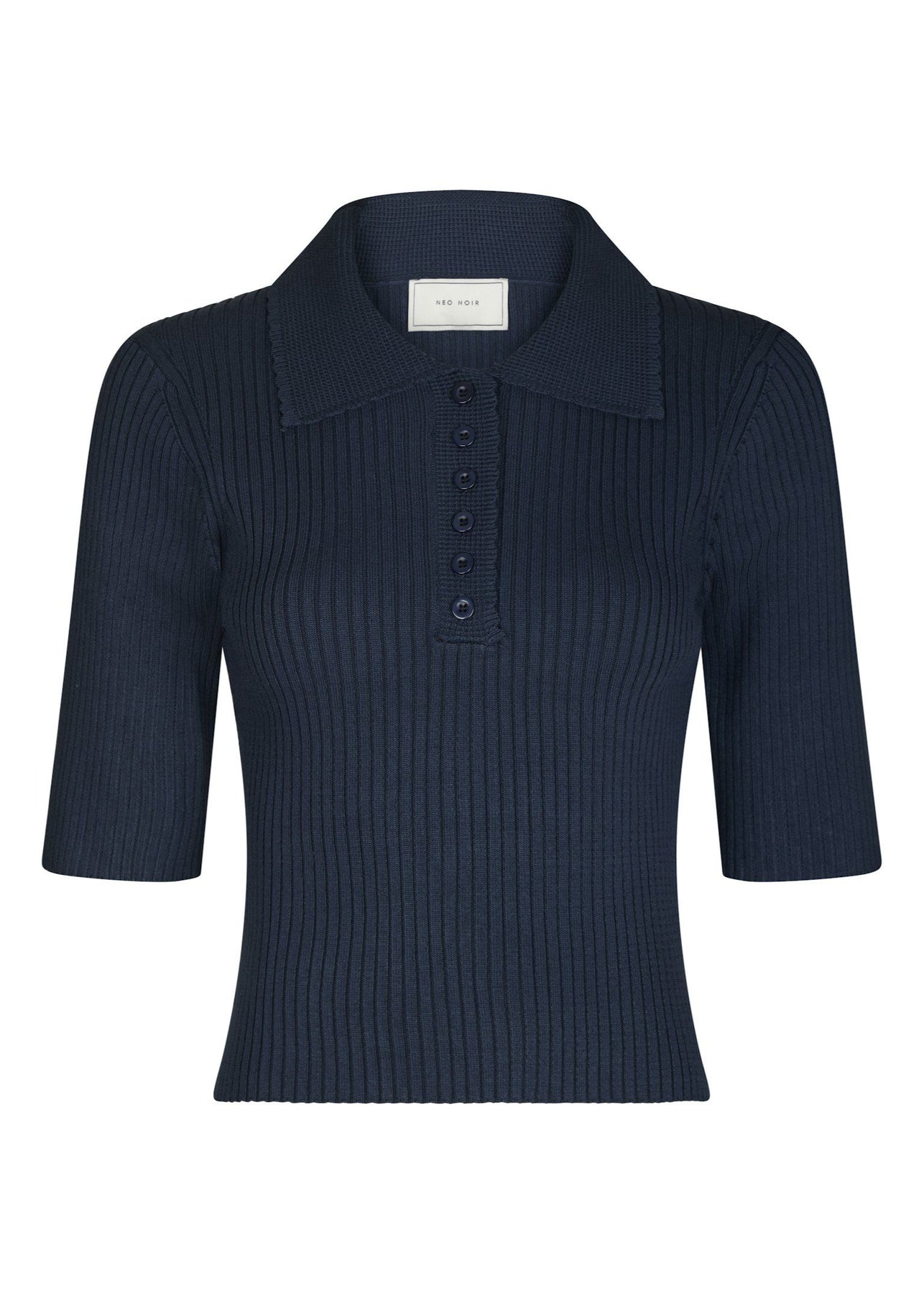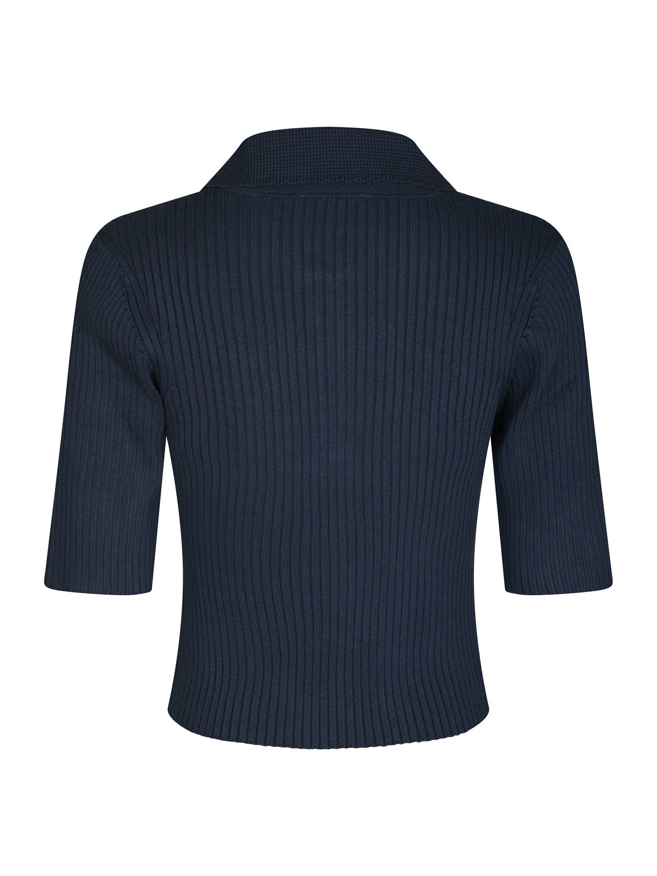 Fin strik polo med knappe lukning foran ved halsudskæringen.