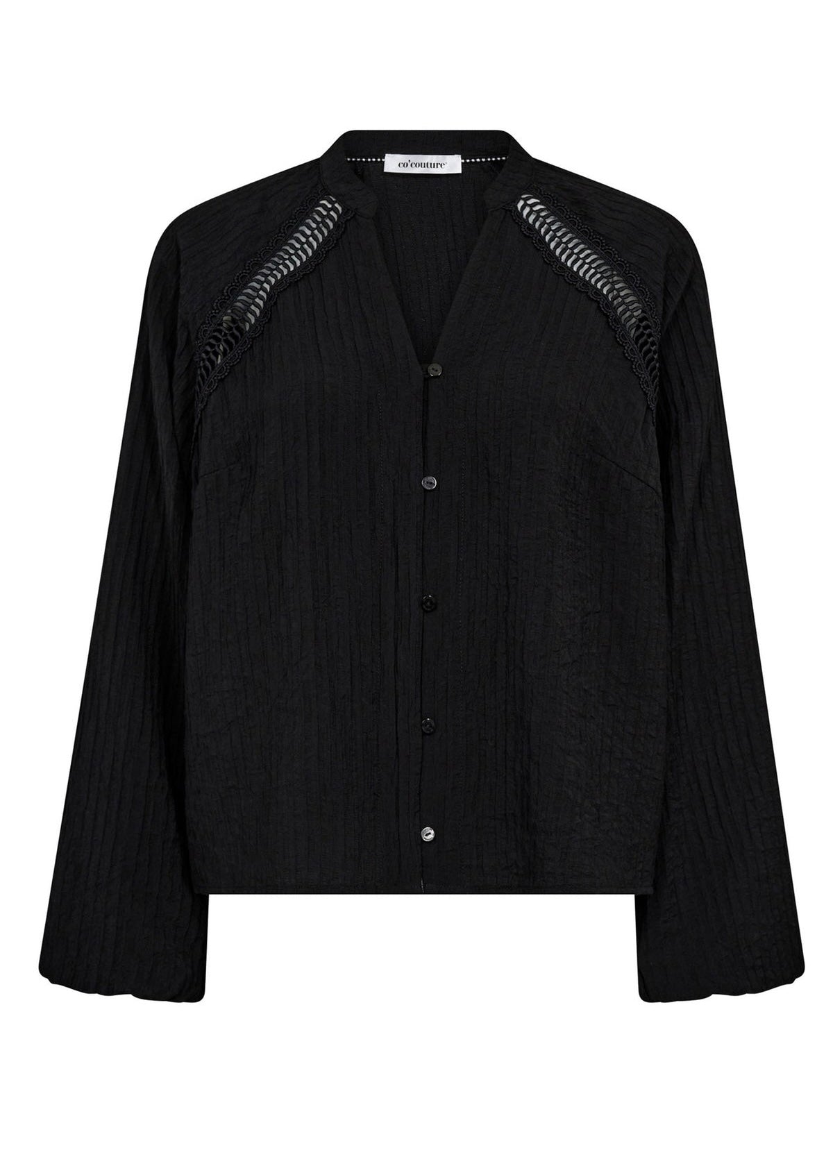 Fin skjortebluse fra Co'Couture med v-udskæring og pintuck detaljer ved skuldre og lange ærmer med elastikkant der er skjult.