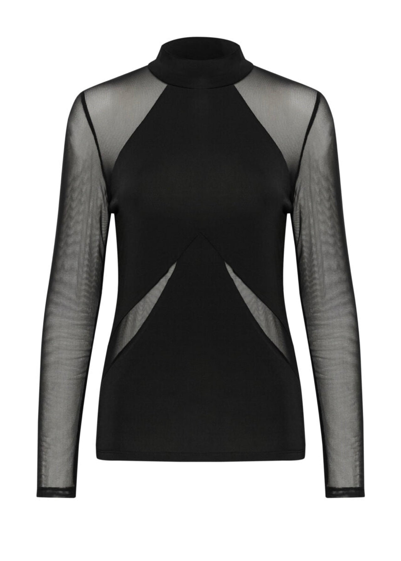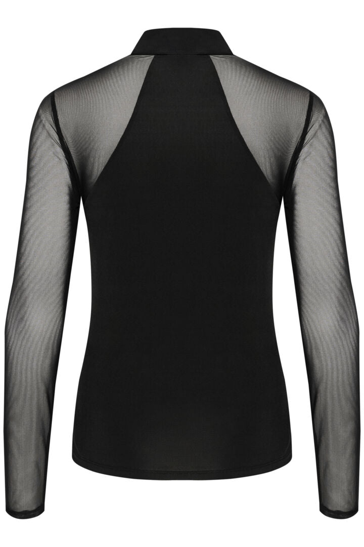 Flot bluse fra Karen by Simonsen med mesh look ved skuldrene og maven.