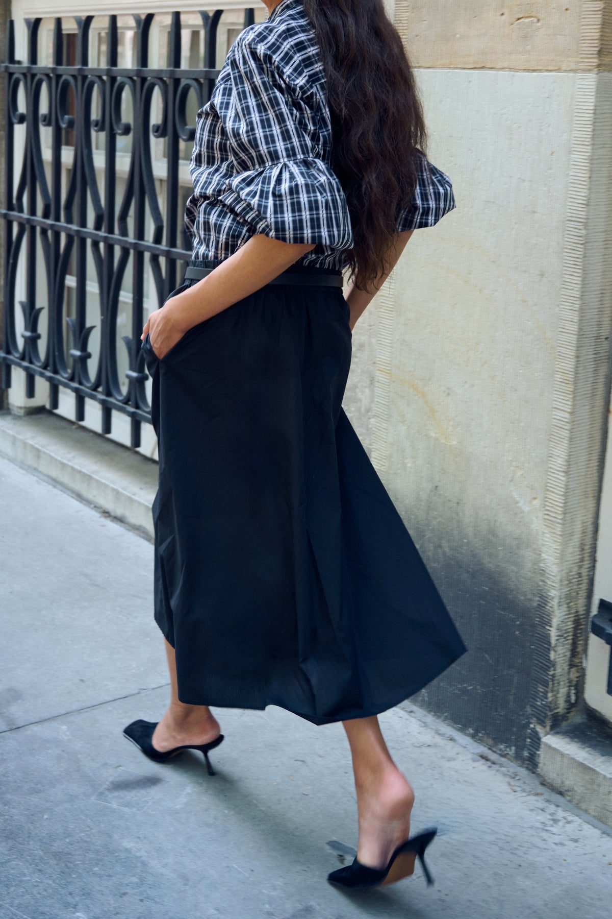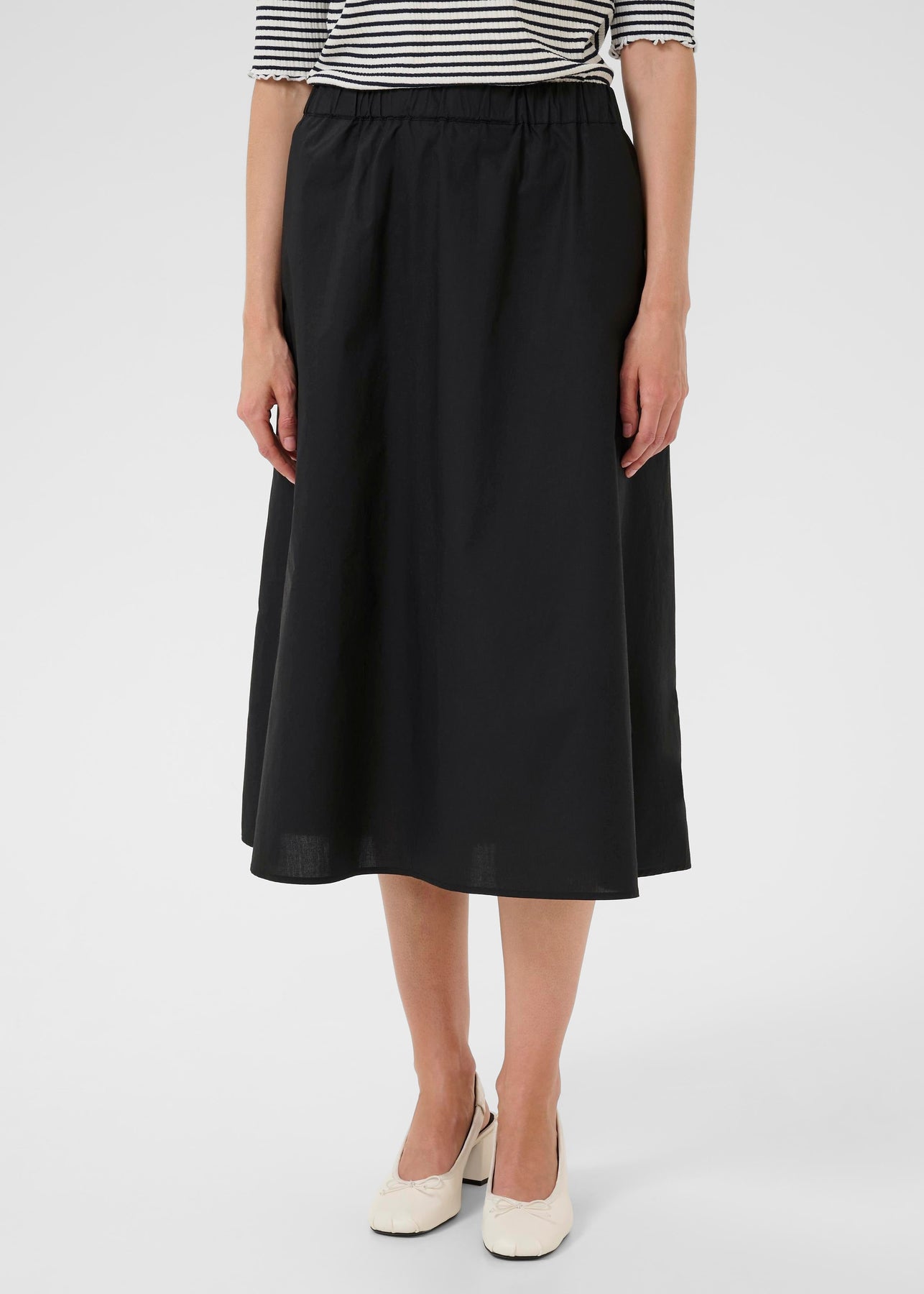 Klassisk sort nederdel fra Karen by Simonsen i lækker bomuldspoplin og med elastik i livet og sidelommer.