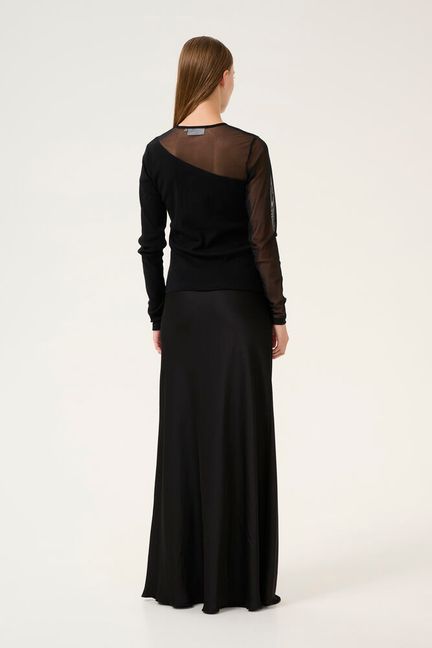 Fin bluse fra Karen by Simonsen. Blusen har mesh detalje på det ene ærme.