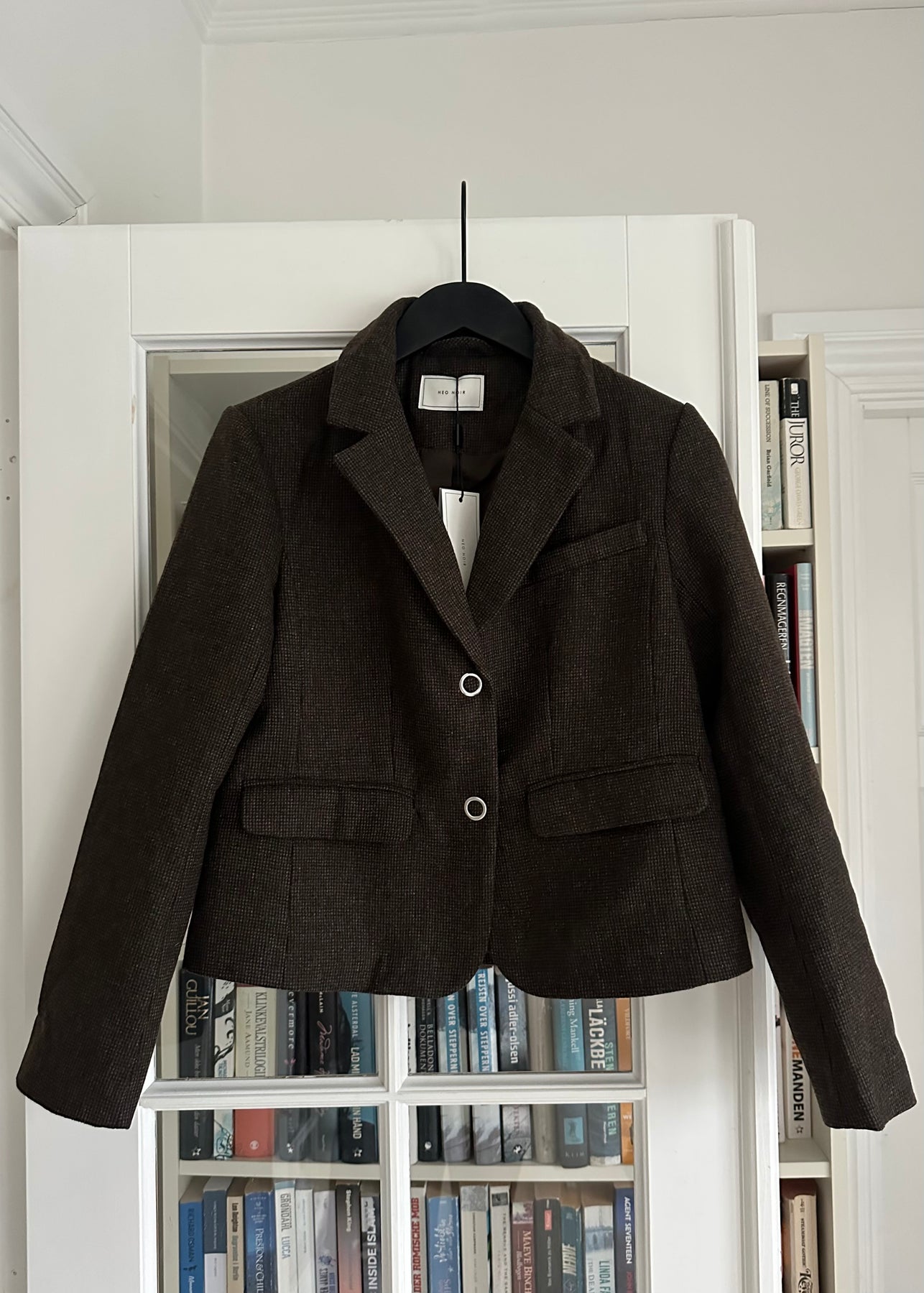 Brun melange blazer fra Neo Noir i blød kvalitet med et ternet mønster. Blazeren har en feminin let taljeret pasform, der giver et elegant og tidløst look.