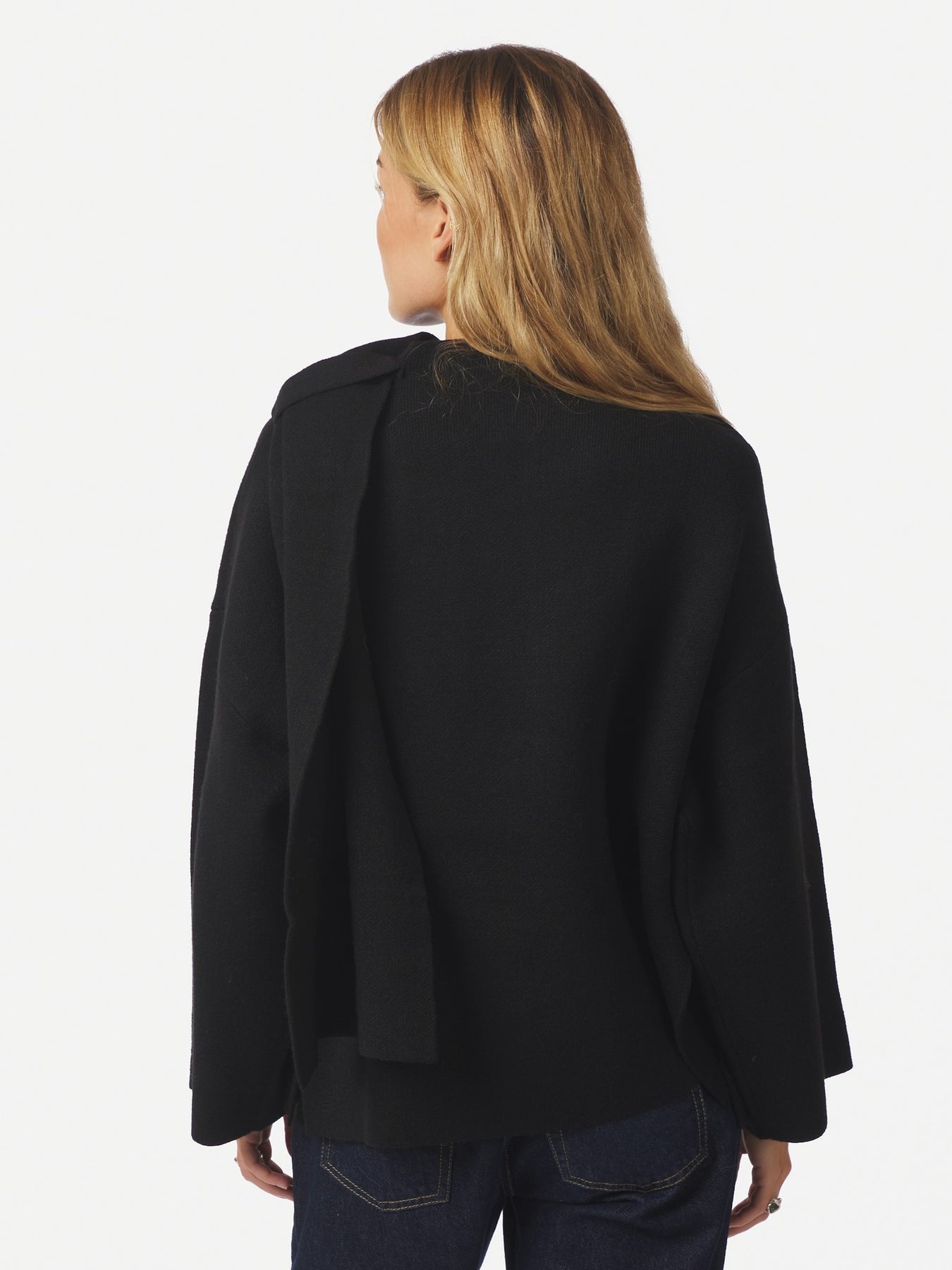Elegant sort cardigan med påsyet tørklæde i blød kvalitet fra Neo Noir.