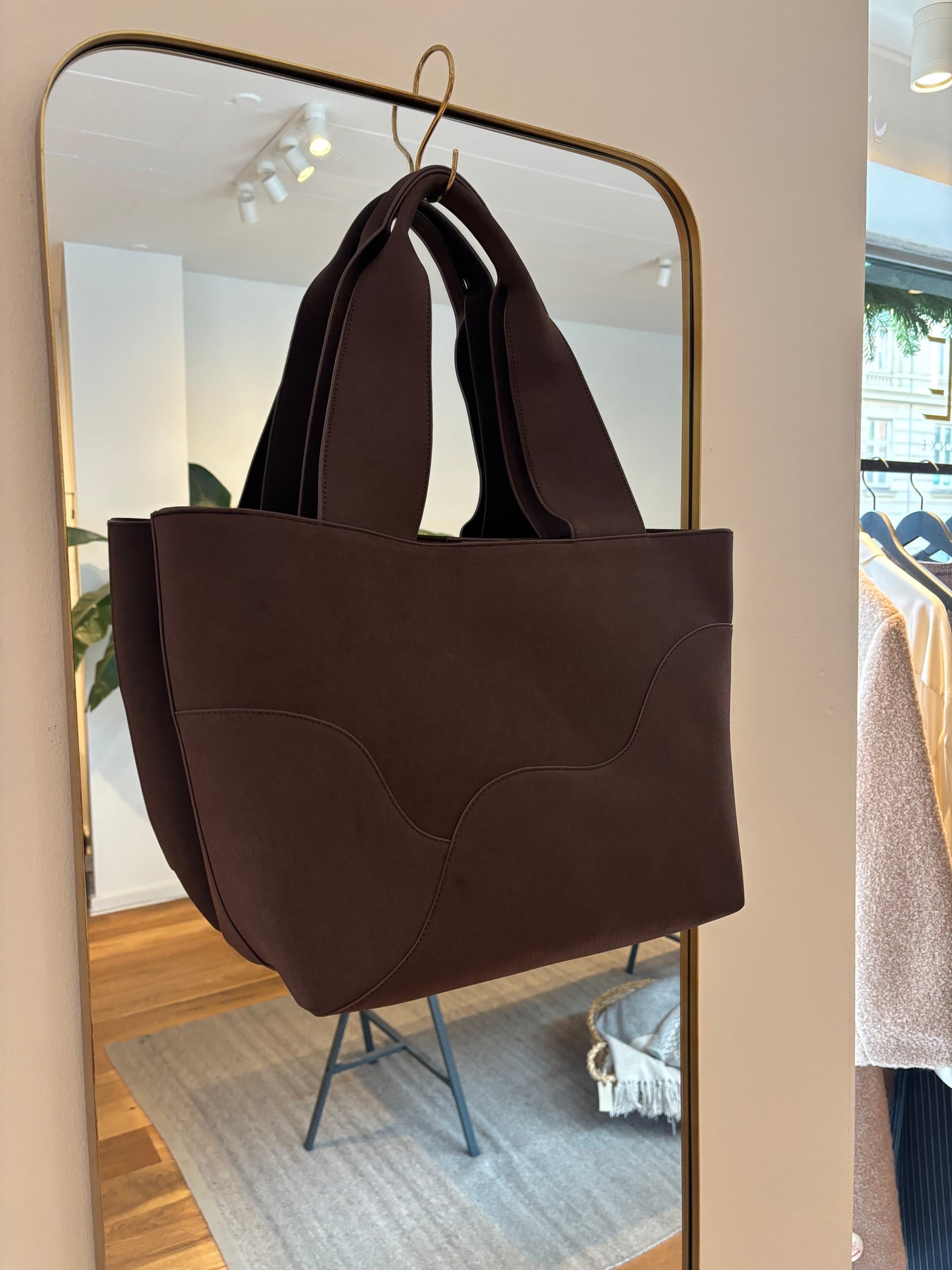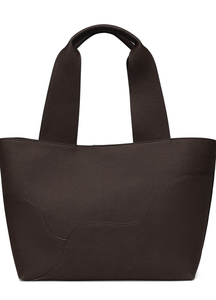 Flot chokoladebrun tote bag fra Noella. Denne taske bærer på en bred strop, lynlåsrum og god plads til bærbar pc og hverdagens essentials.