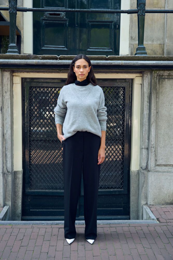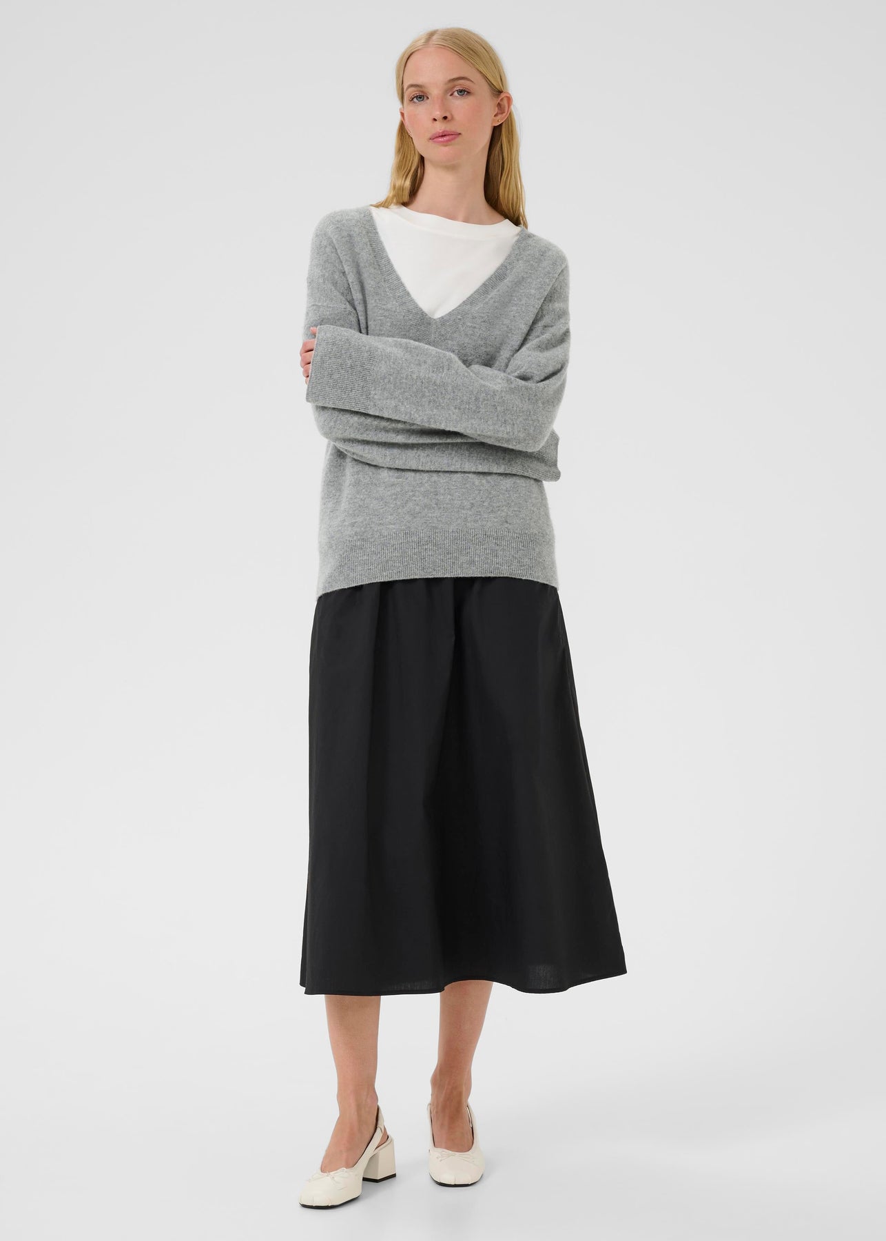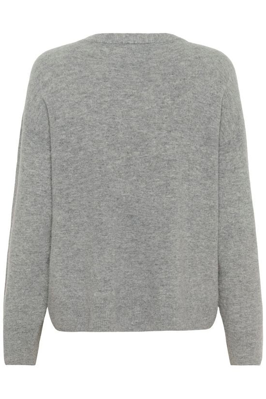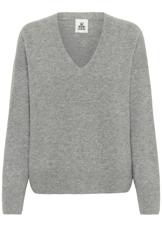 Klassisk grå pullover i 100% blød og let uld. Pulloveren har v-hals, lange ærmer og en lige pasform.