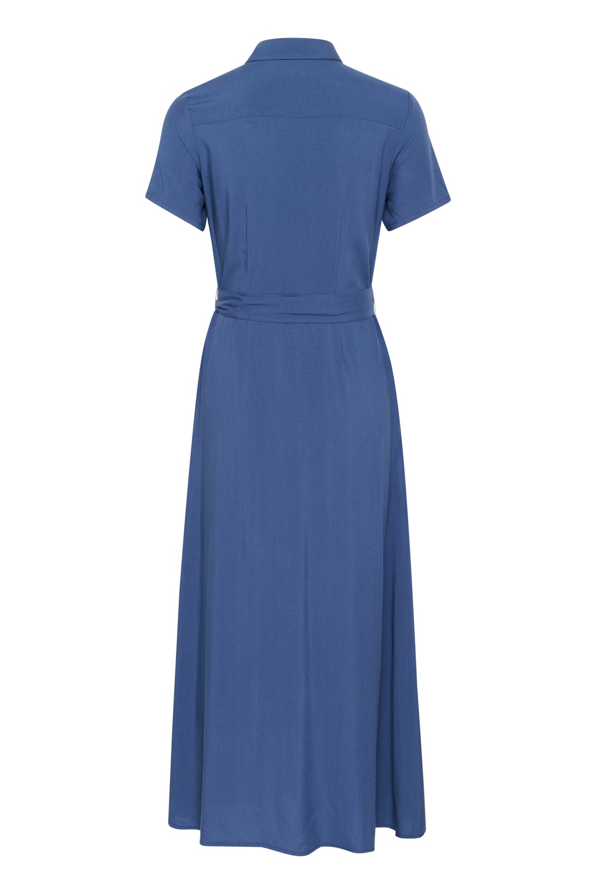 Skøn blå skjortekjole fra Part Two med korte ærmer, knaplukning og bindebånd i livet.
