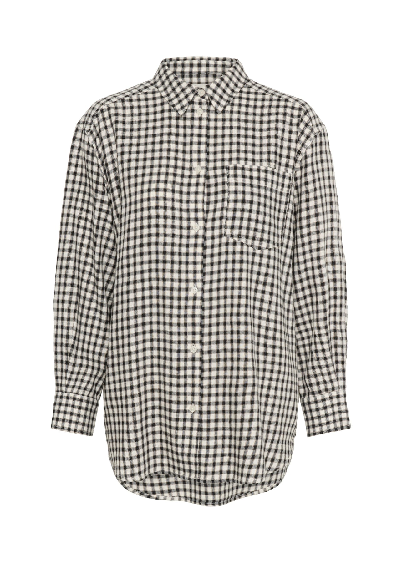 Småternet oversize skjorte fra Part Two med navy og hvide tern. Skjorten har krave, knaplukning og en løs pasform.