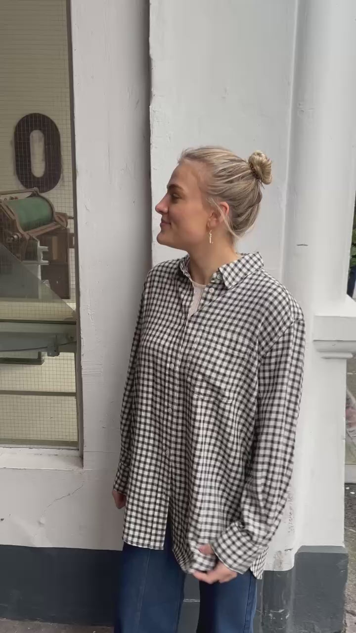 Småternet skjorte fra Part Two med navy og hvide tern. Skjorten har krave, knaplukning og en løs pasform.