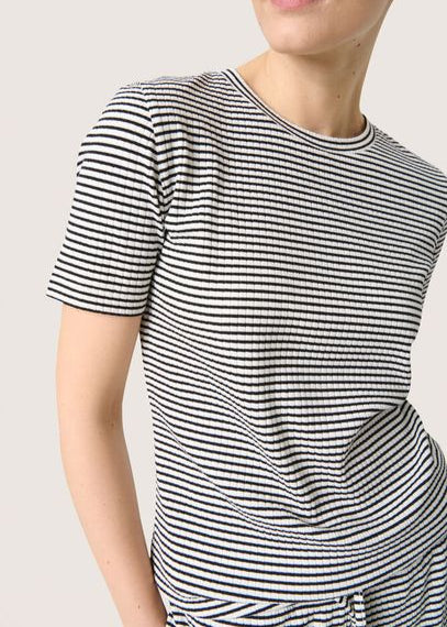 Blød stribet t-shirt fra Soaked in Luxury. T-shirten har en løs pasform med korte ærmer og rund hals.