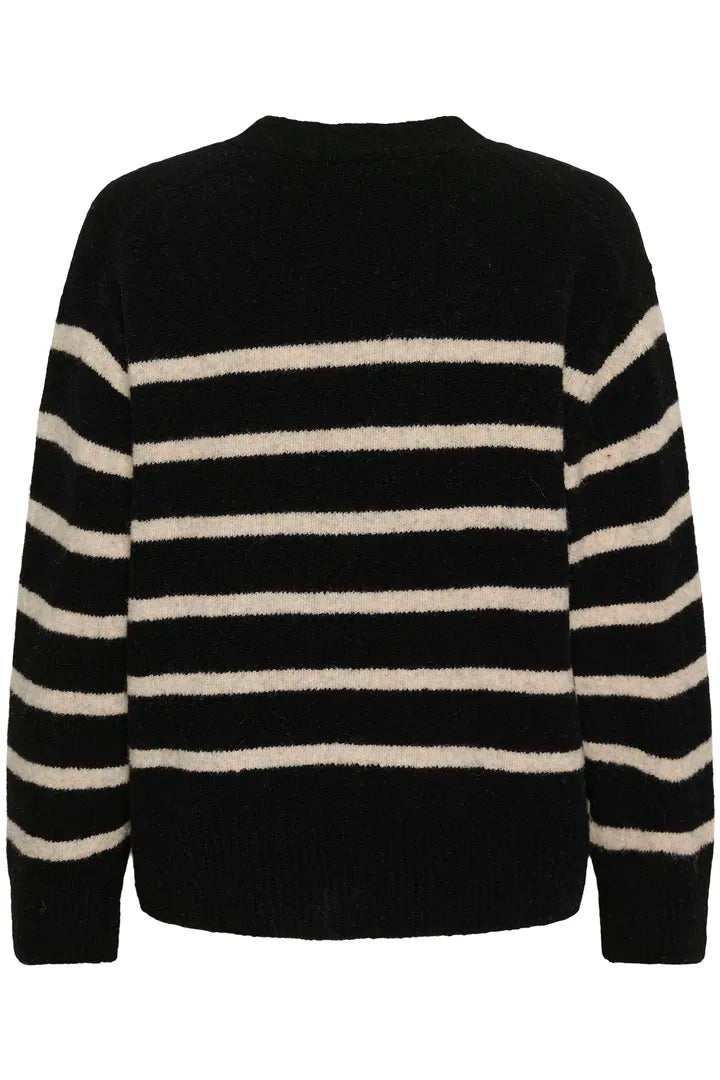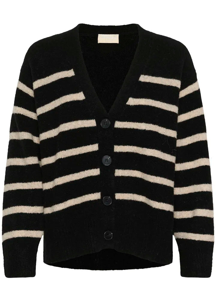 Skøn cardigan fra Soaked. Cardiganen har en V-udskæring og lukkes med sorte knapper foran.