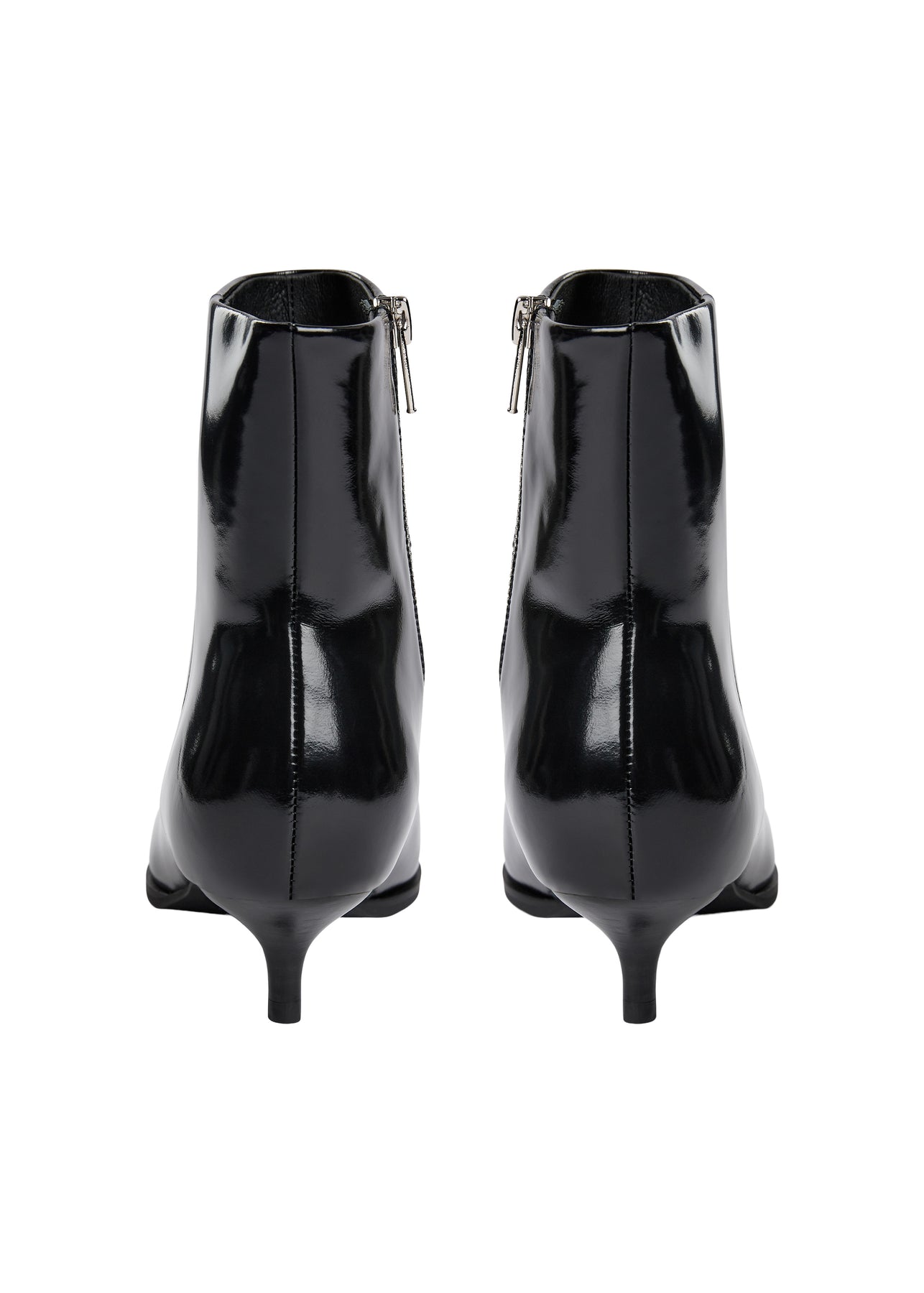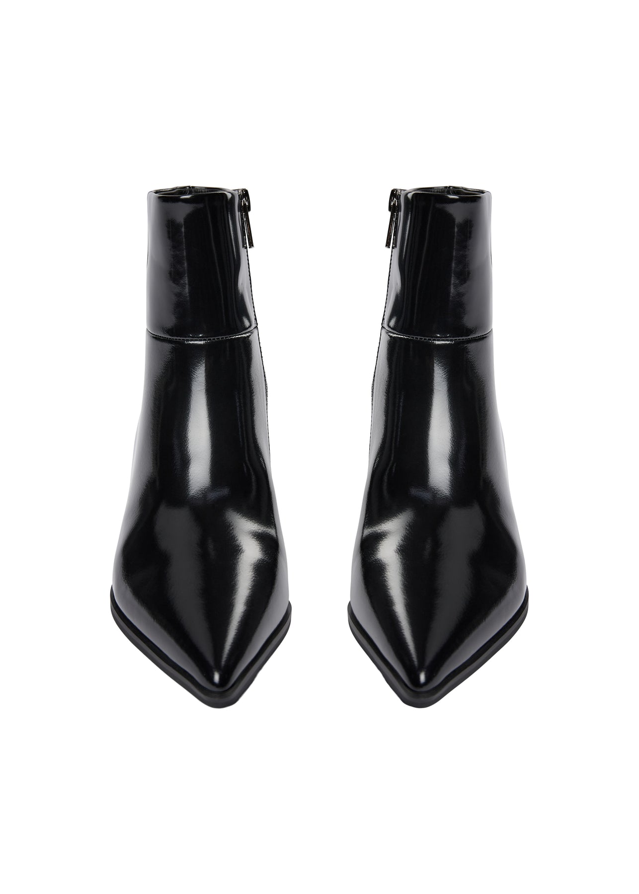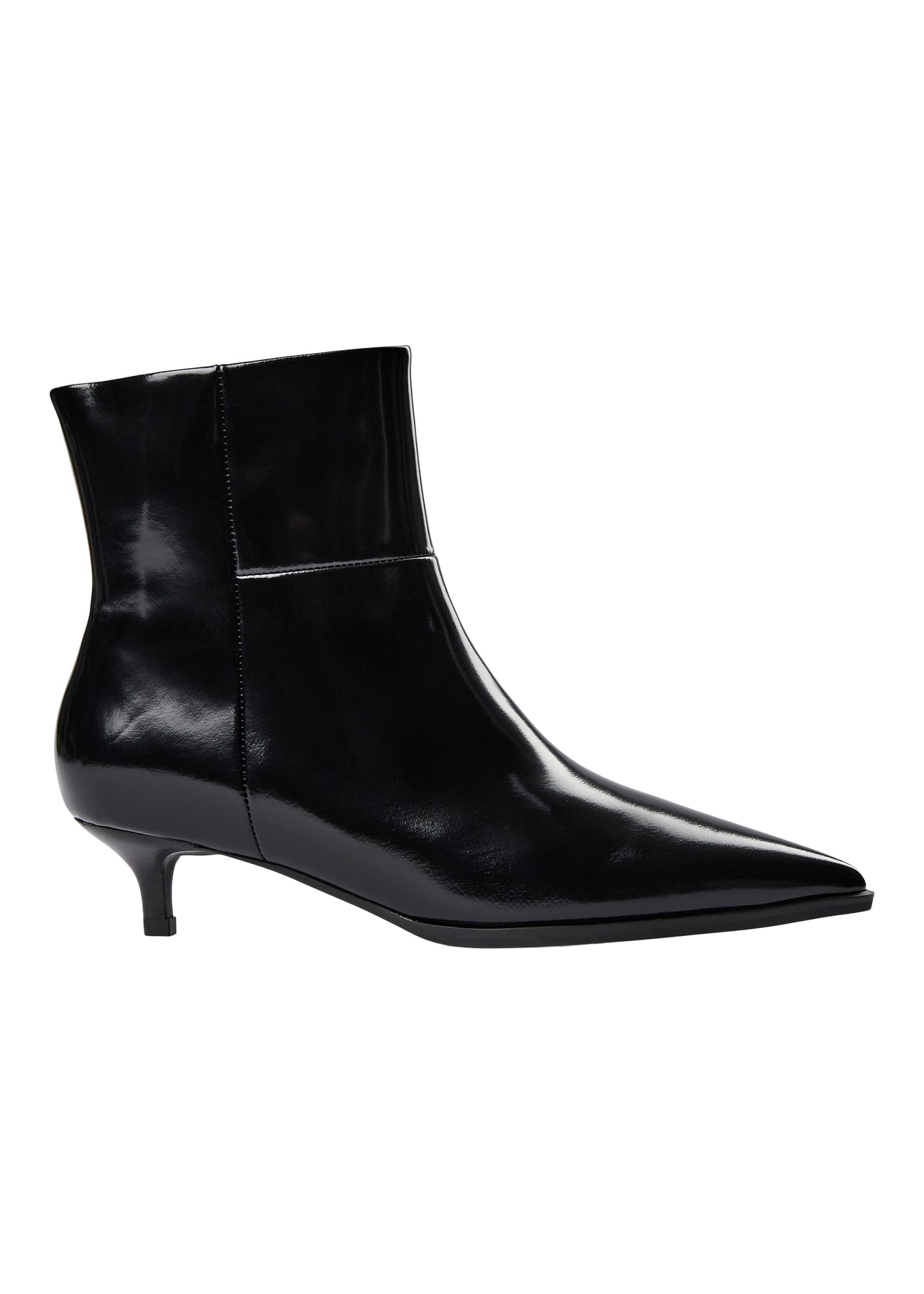 Sorte blanke skindstøvler fra Sofie Schnoor. Støvlerne har et kort skaft og har spidse snuder. Hælen er 6 cm.