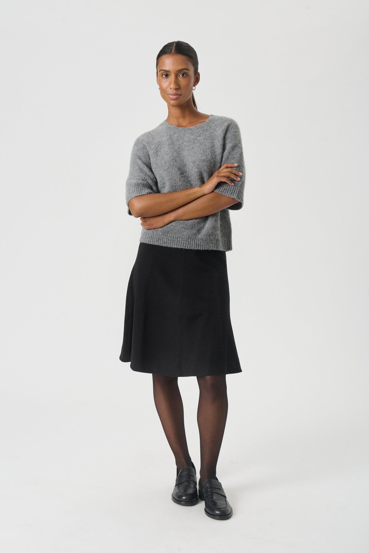 Skøn grå strik t-shirt fra Part Two den er i en lækker blød kvalitet også har den lidt glimmer i sig.