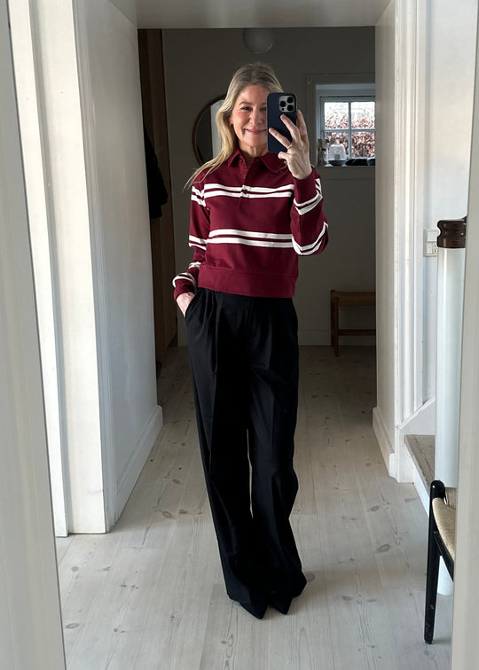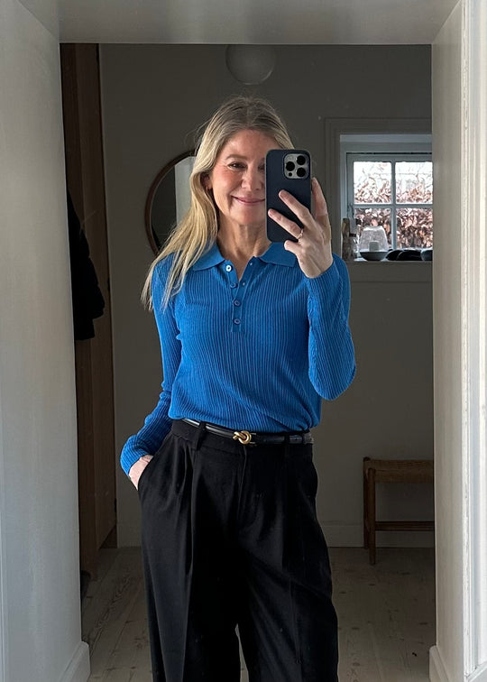 Ultrablød bluse fra My Essential Wardrobe. Den har en rund hals, lange ærmer og en tætsiddende pasform.