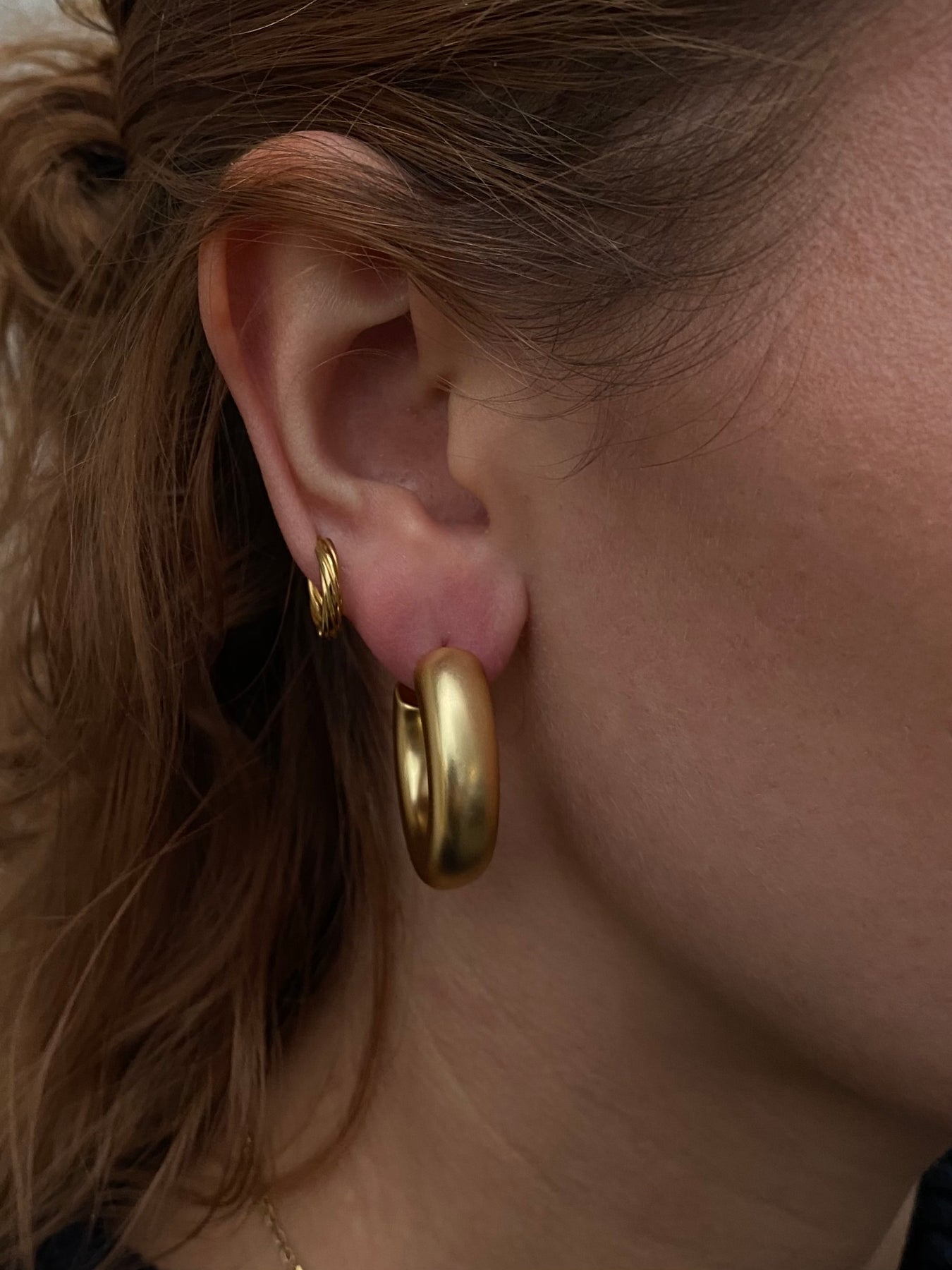 Øreringene måler 0,8cm i tykkelsen og er 3cm i diameter.