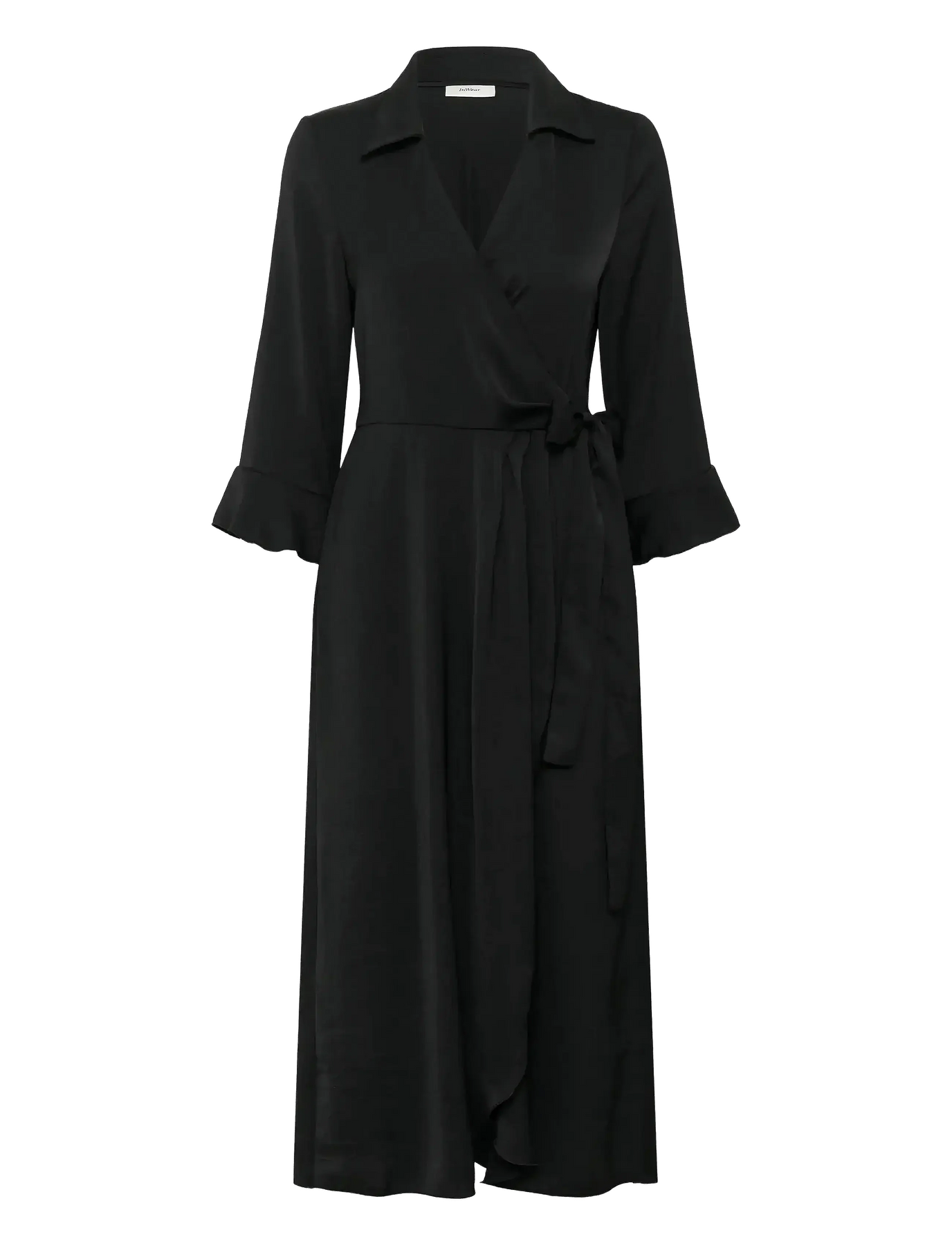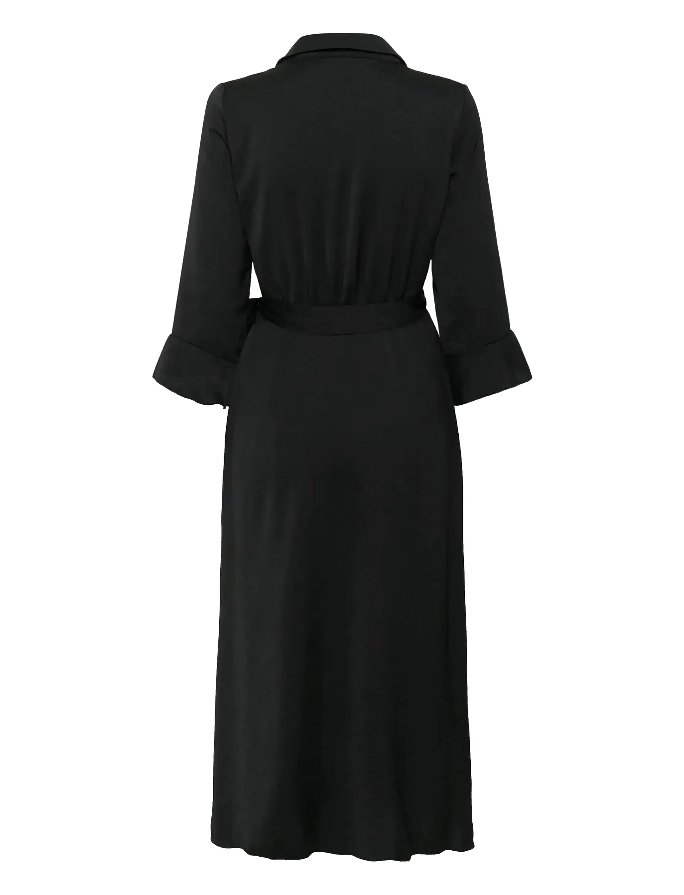 Denne fine sorte kjole fra In Wear tilbyder et elegant look med 3/4 lange ærmer og et fint bindebånd i livet.