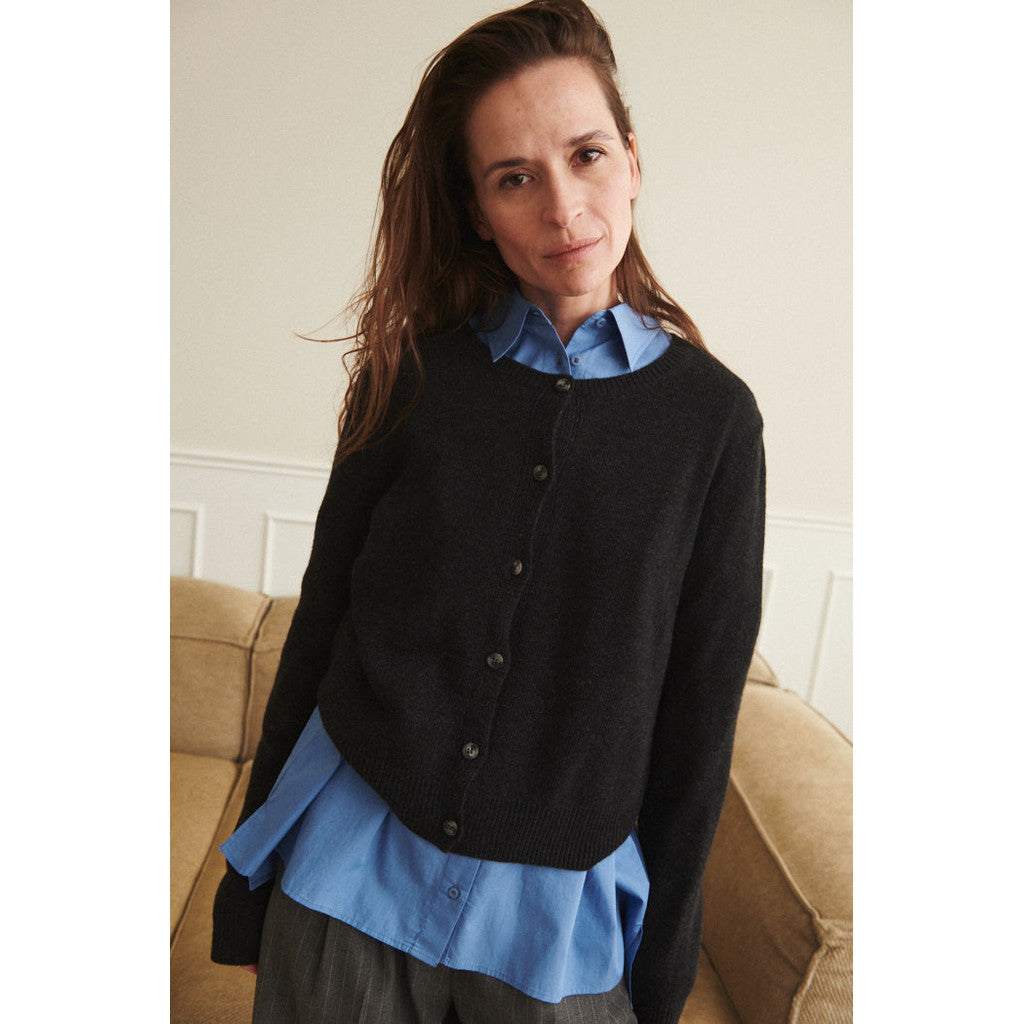 Enkel og fin mørkegrå cardigan fra Basic Apparel. Cardiganen har en lige pasform.