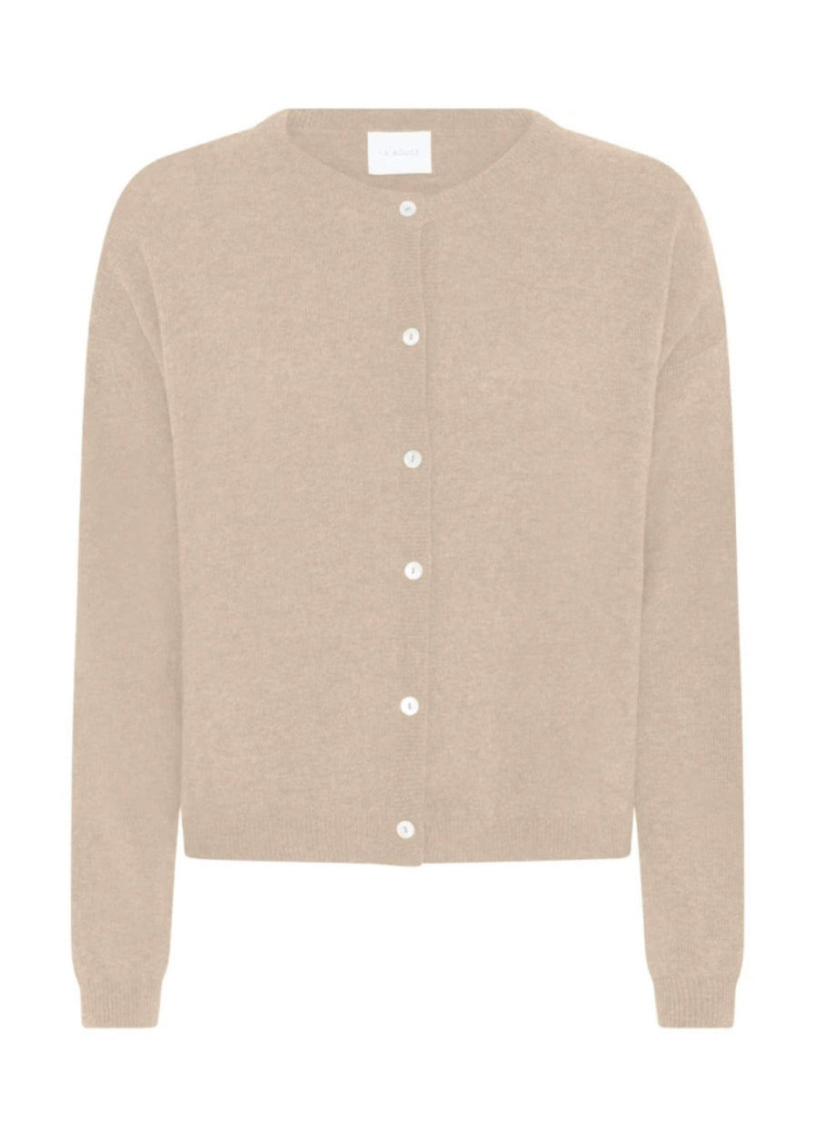 Lækker blød cardigan fra La Rouge. Cardiganen har rund hals, knaplukning foran og har en løs pasform.