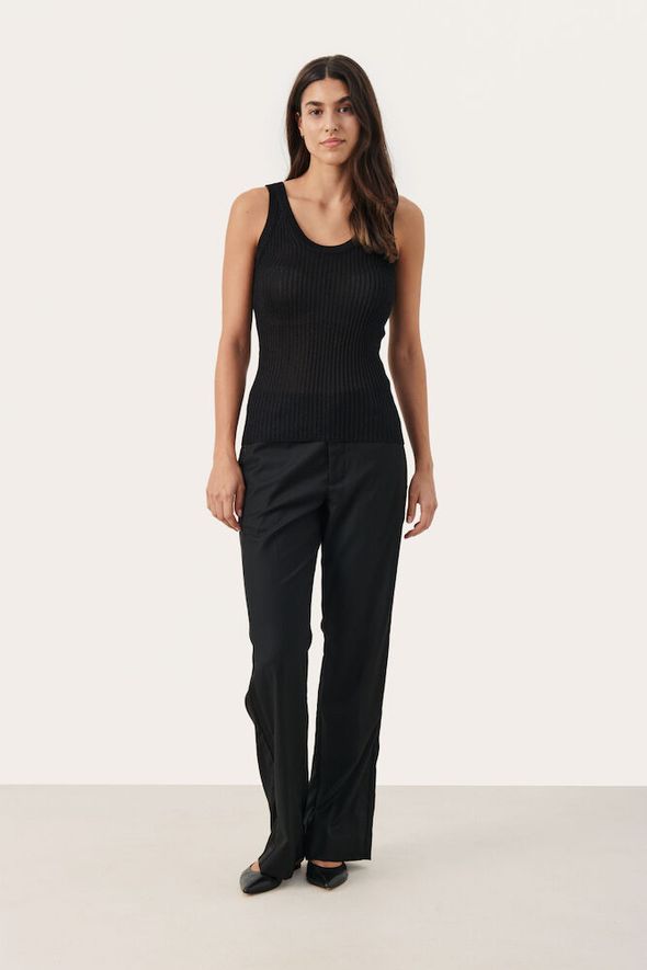 Fin ribstrikket top fra Part Two. Toppen har en rund udskæring og brede stropper.
