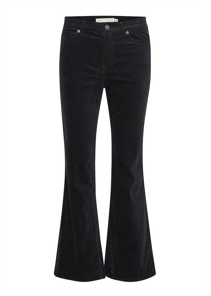 Lækre sorte bukser fra InWear med et bootcut snit, mid-rise talje og en dejlig bomulds/velourkvalitet.