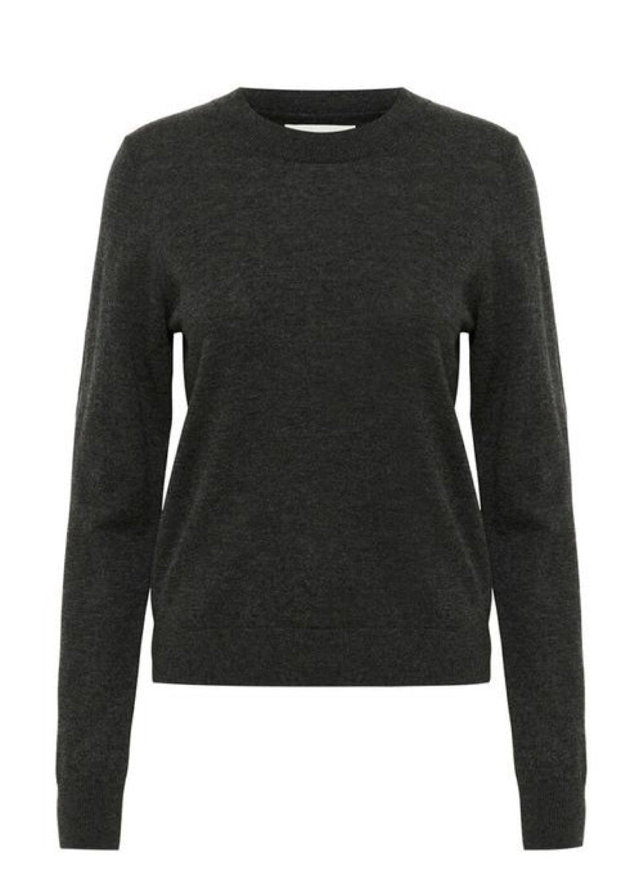 Klassisk mørkegrå pullover fra Part Two i lækker uld/cashmere. Pulloveren har en rund udskæring i halsen, lange ærmer og en lige pasform.
