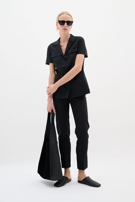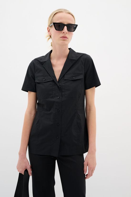 Fin sort kortærmet skjorte fra Inwear. Skjorten har en v-hals, knaplukning foran og en let taljering.