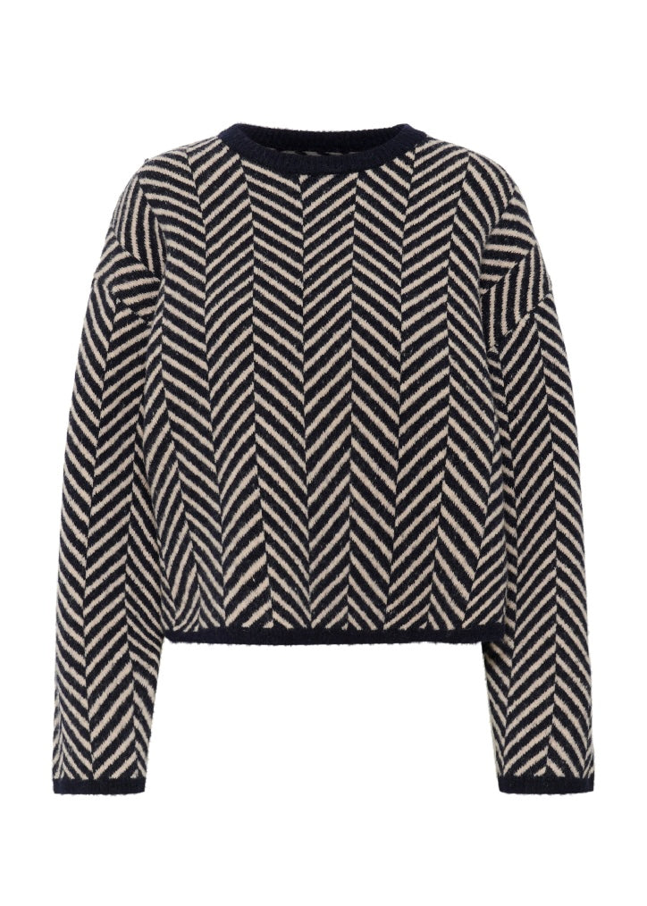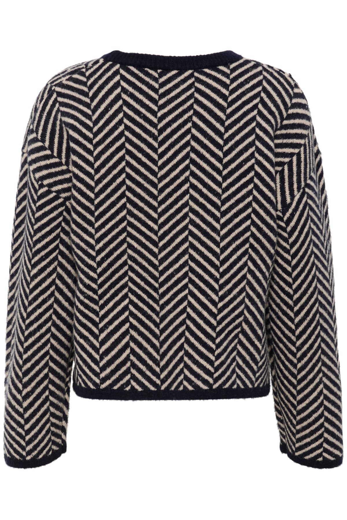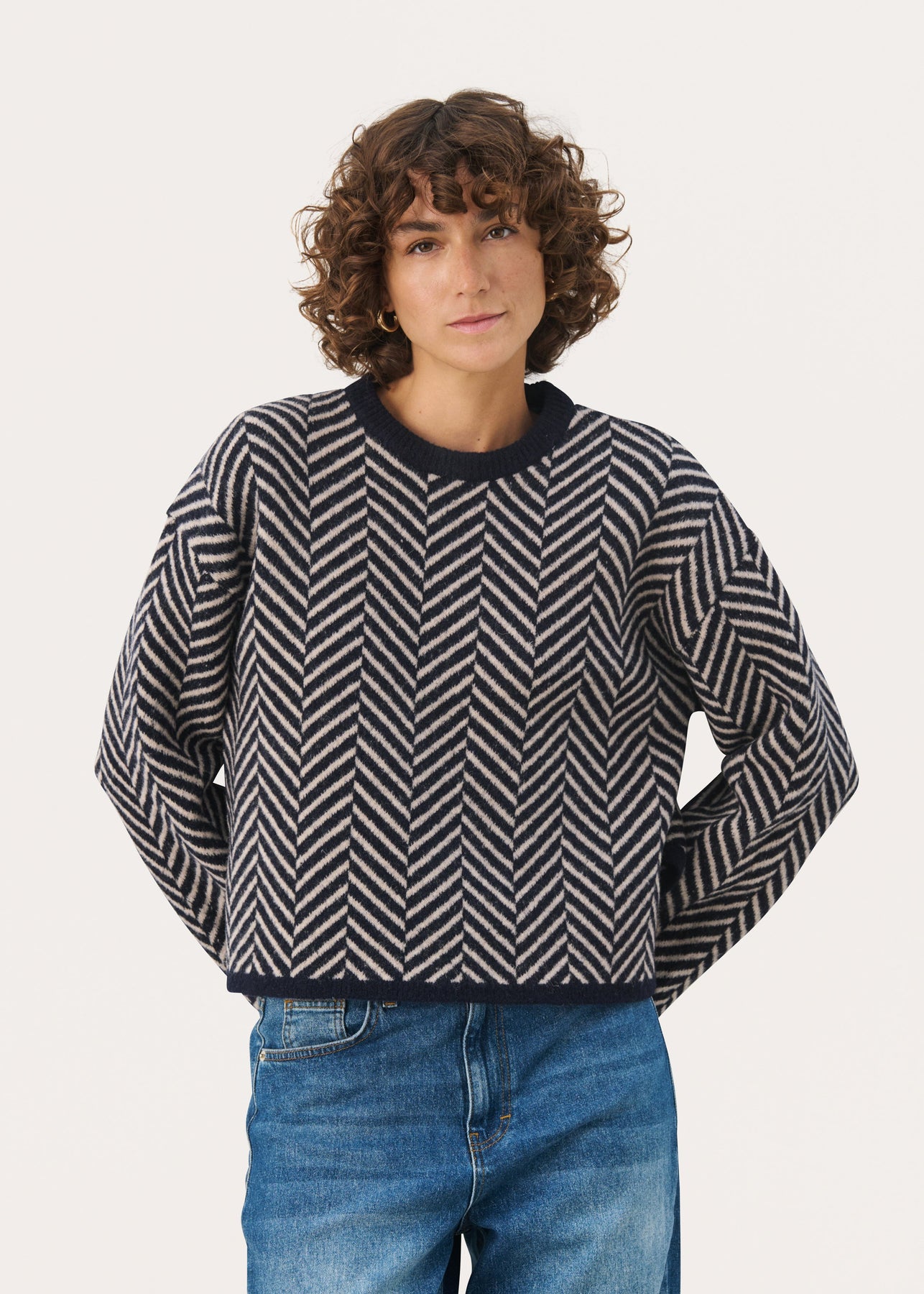 Lækker pullover fra Part Two med fint zig-zag mønster, løs pasform, rund hals og slids i siderne.