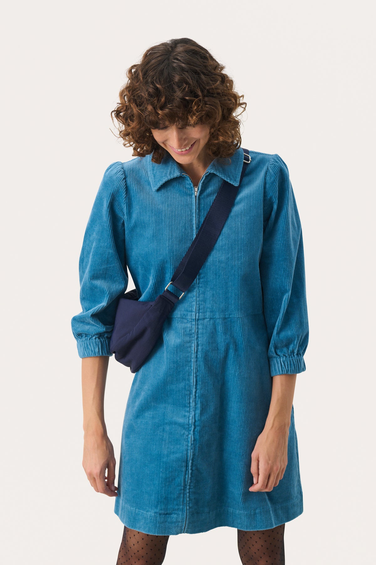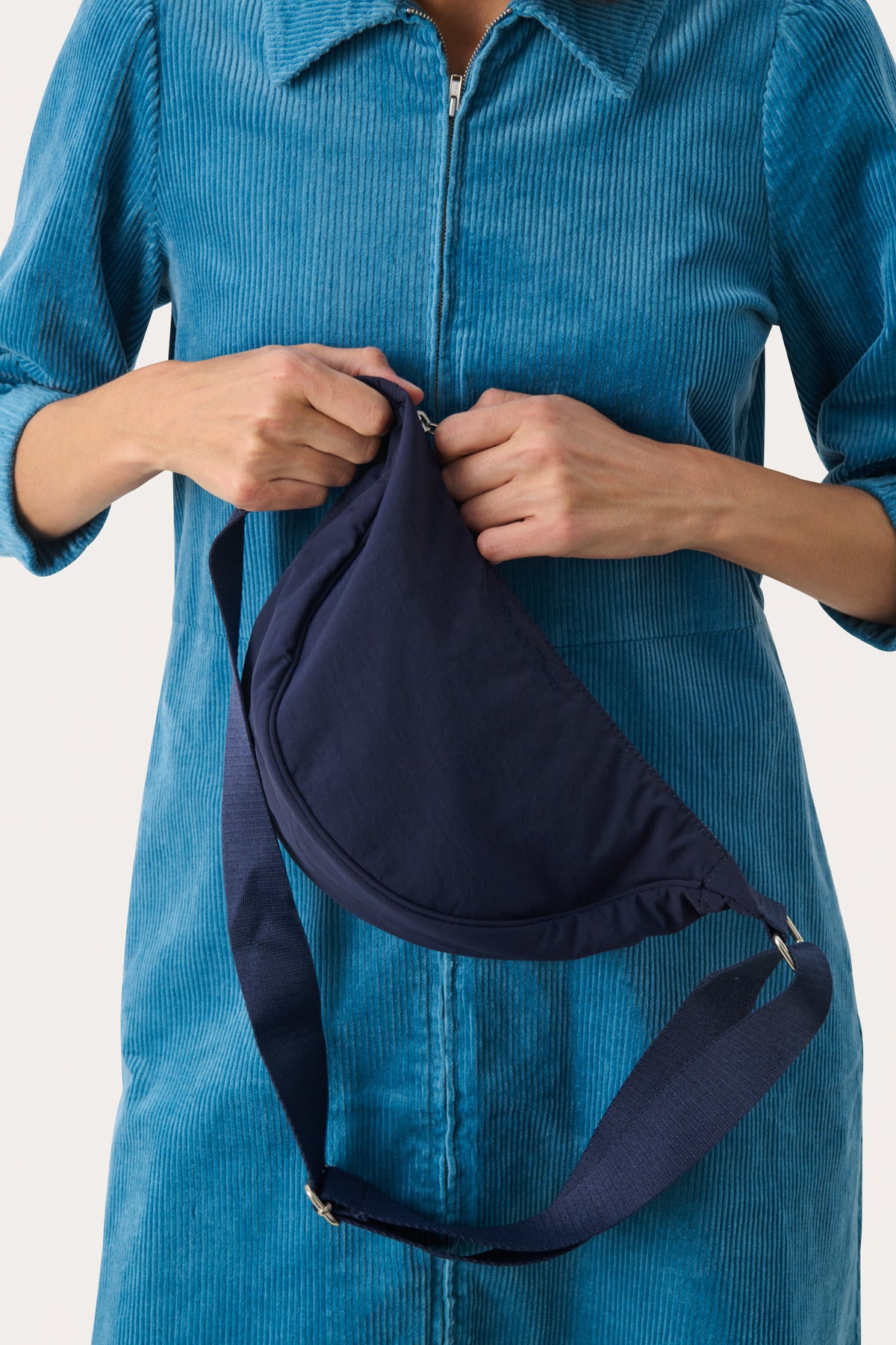 Cool navy crossover taske. Tasken har et stort rum, et lille rum og justerbar strop.