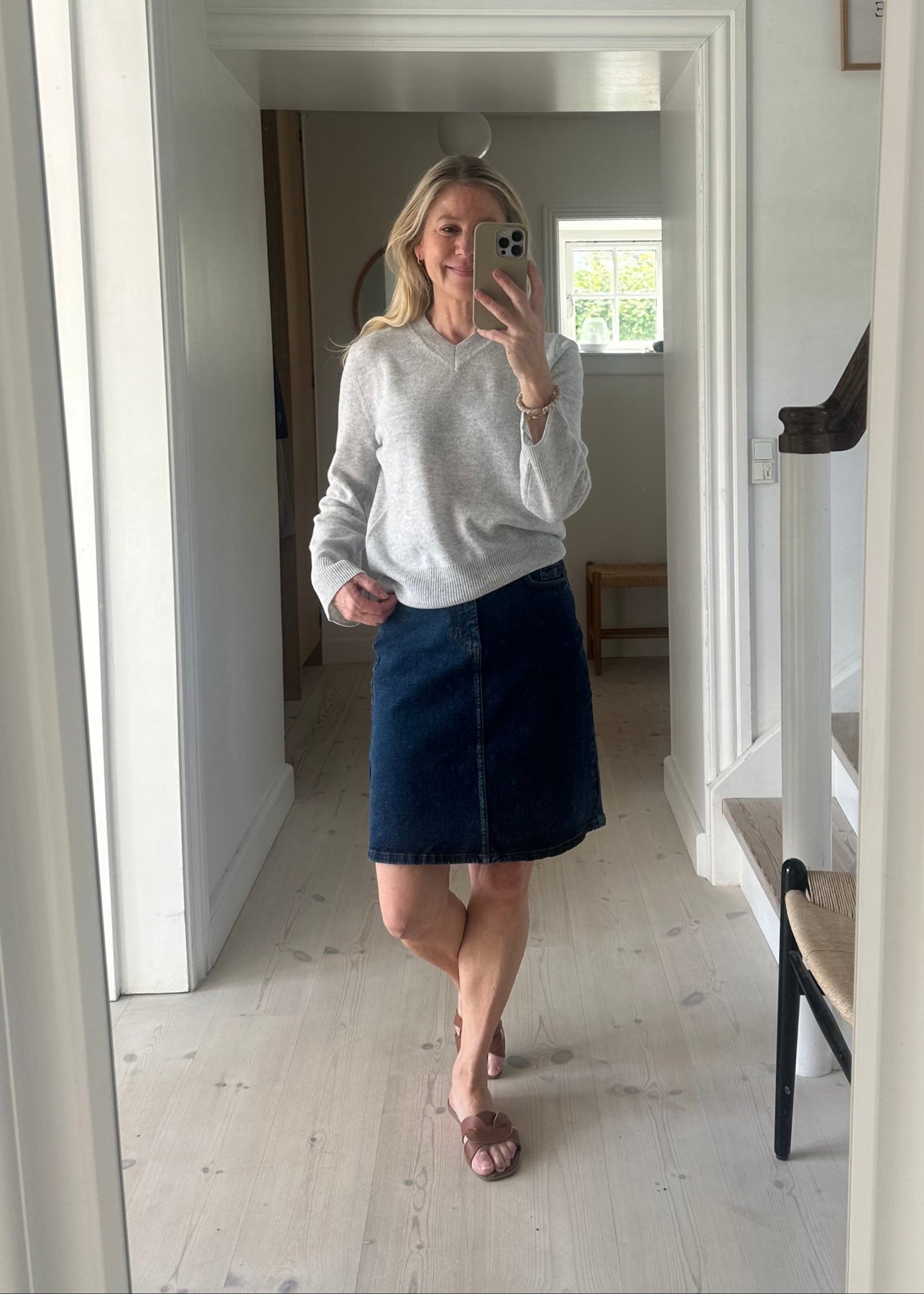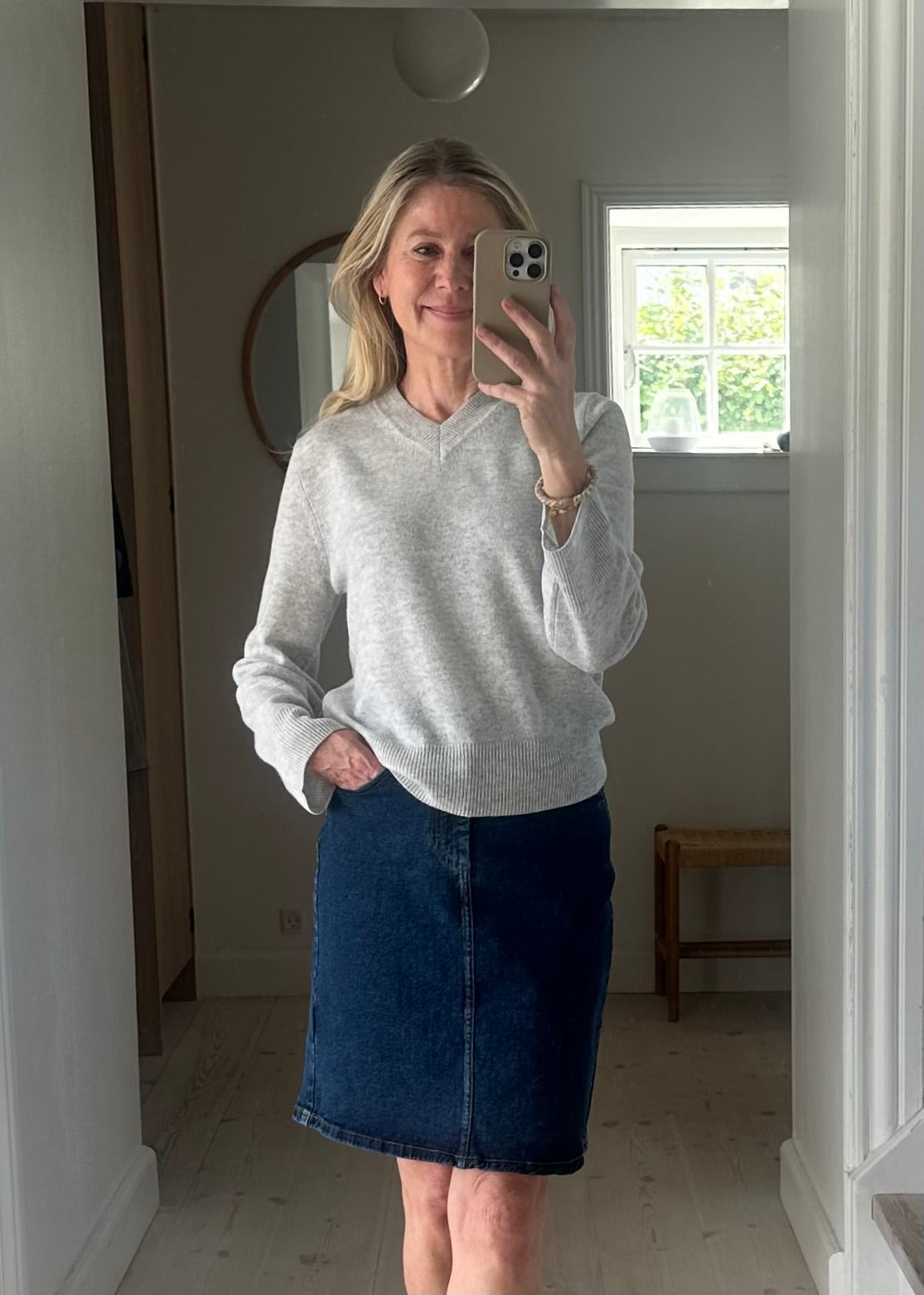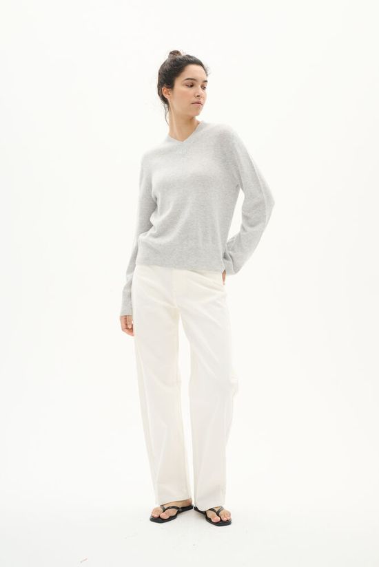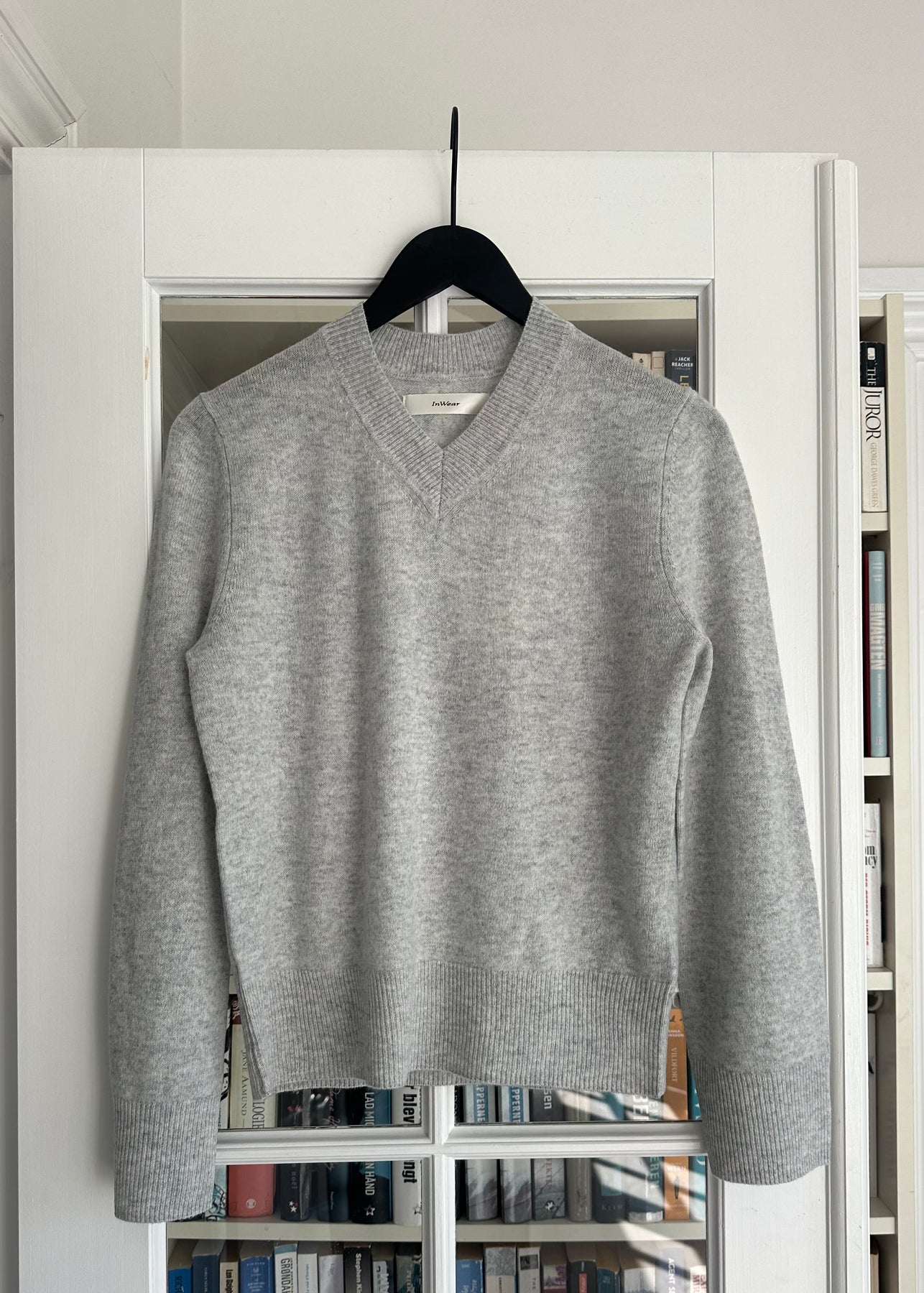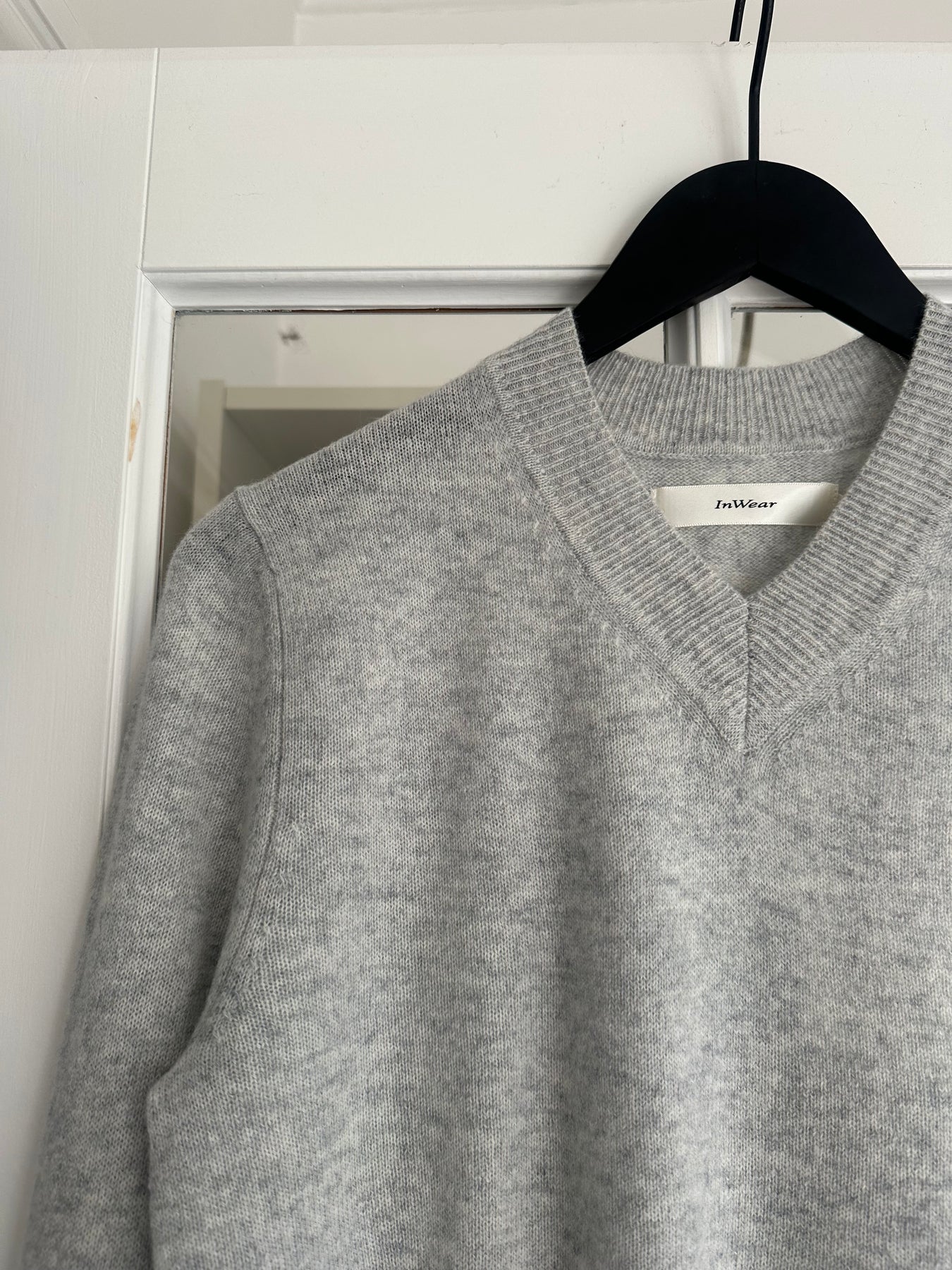 Fin grå strik fra Inwear i lækker uld/cashmereblanding. Strikken har en v-hals og lange ærmer.