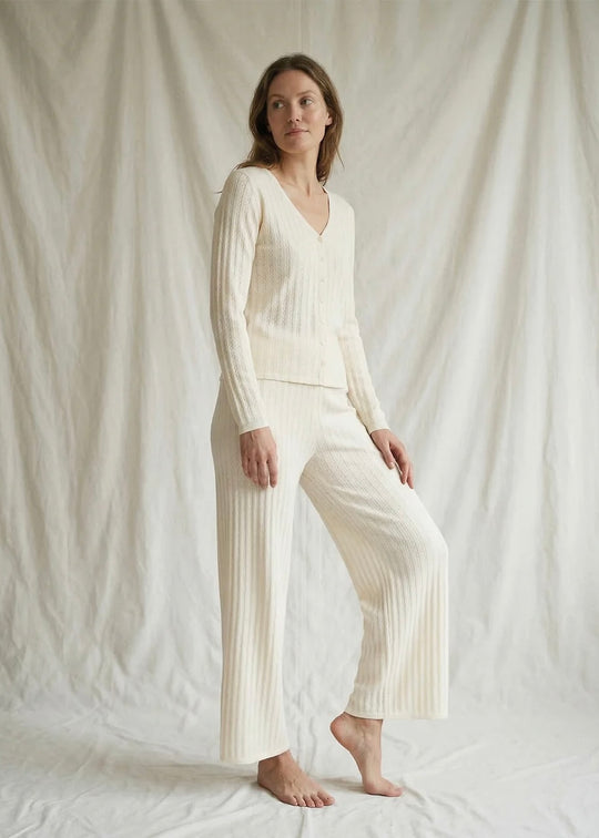 Fin kort halskæde fra Sui Ava med små lyserøde og lilla perler og små hvide blomster.