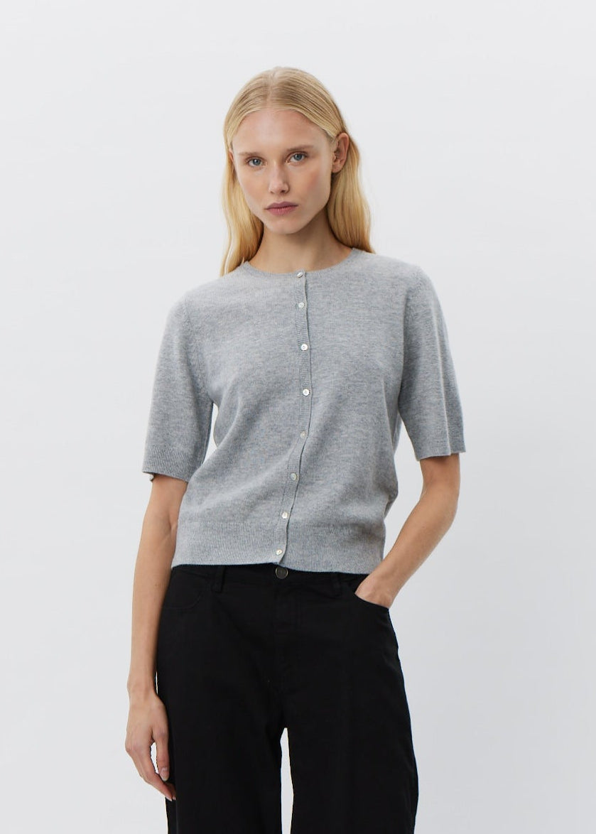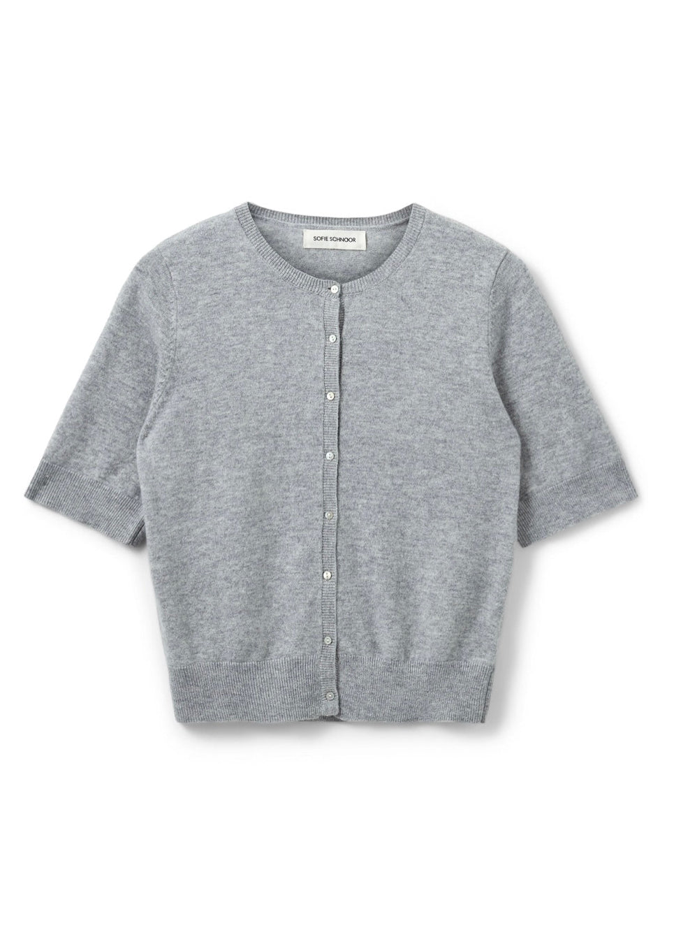Super fin hvid cardigan fra Sofie Schnoor. Cardiganen har korte ærmer og lukkes med knapper foran.