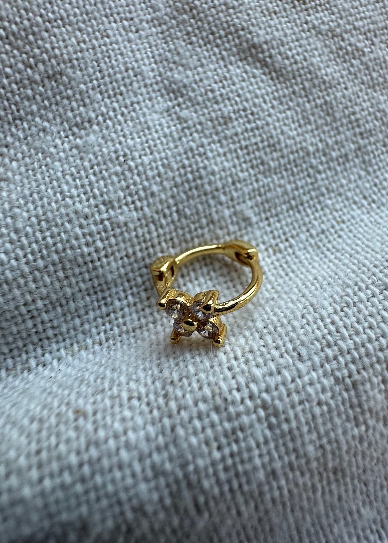 Fin lille hoop med zirkoner fra Camilla Folkmann. Den er lavet til at sidde i de ekstra huller i øret.