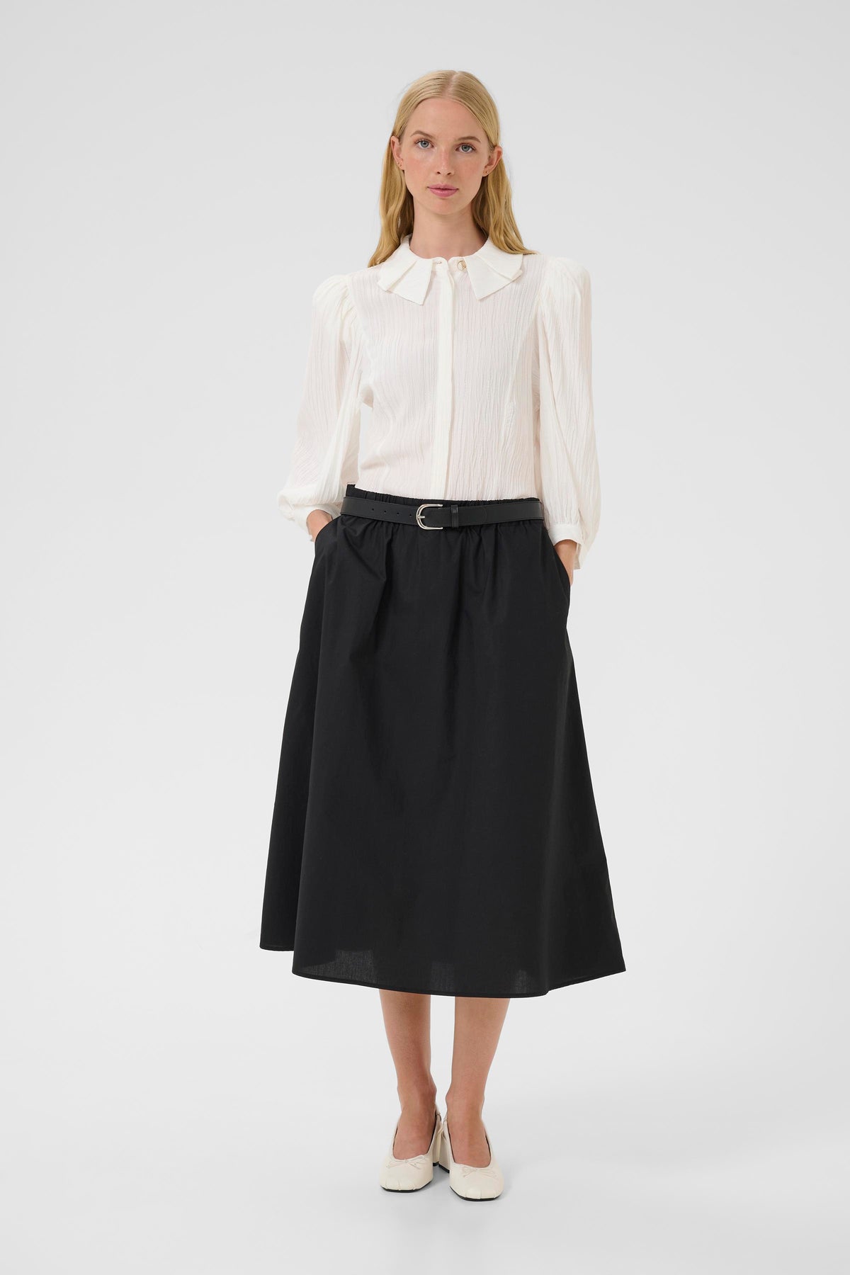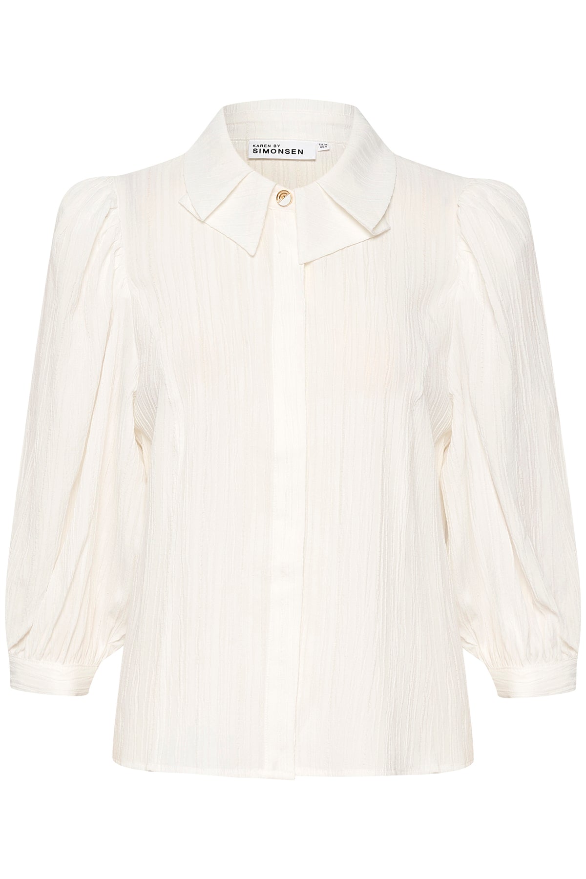 Skøn skjortebluse fra Karen by Simonsen. Blusen er i plisseret materiale og har en klassisk krave med knaplukning samt stumpede ærmer.