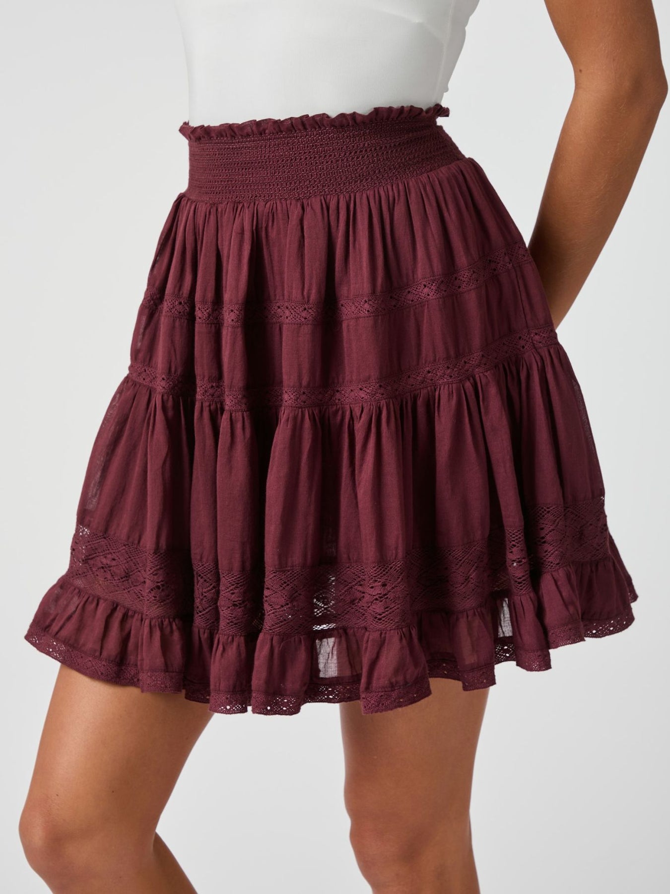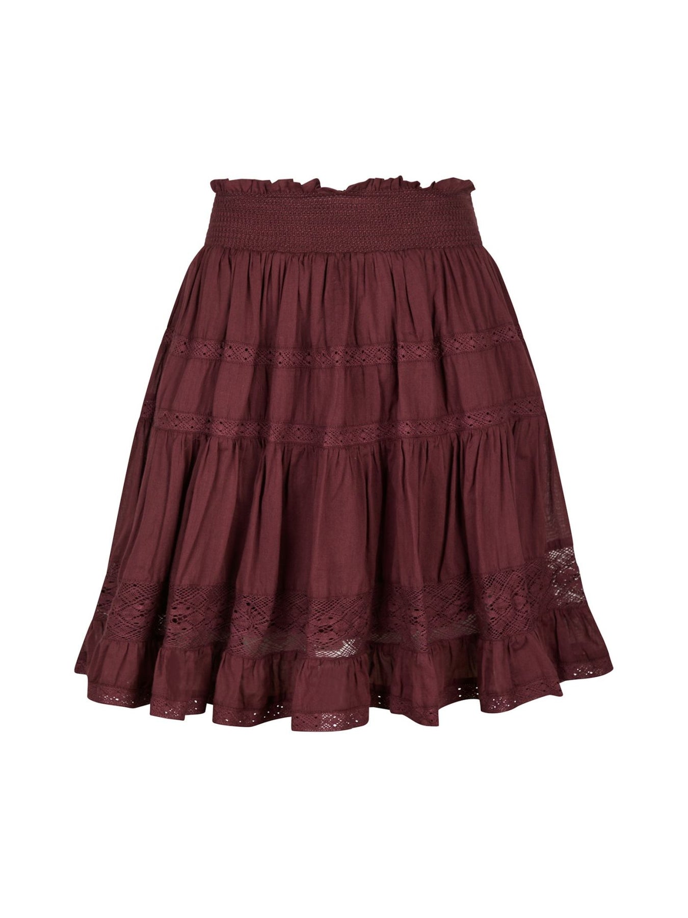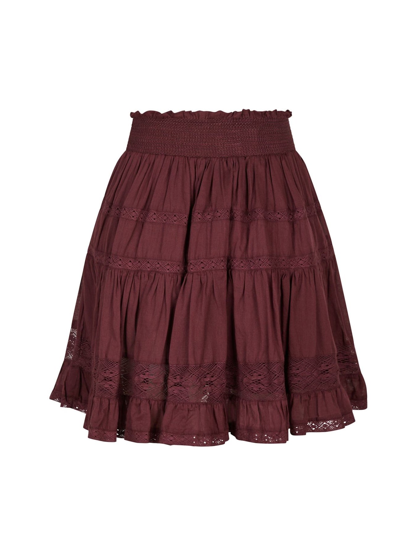Kort nederdel i blød bomulds voile med fine detaljer som bånd og flæser. Nederdelen har smock i taljen som gør den behagelig at have på.