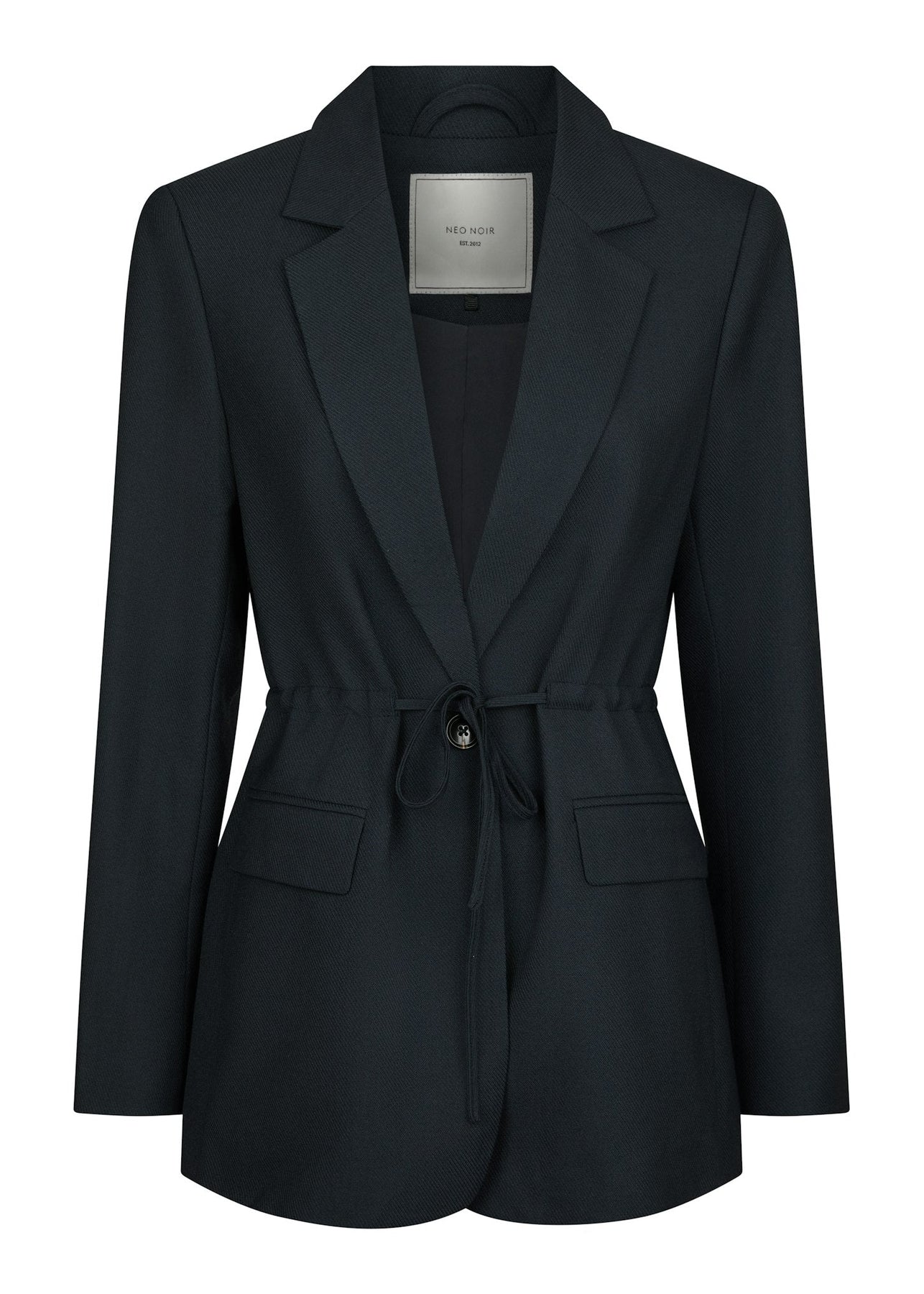 Elegant navy blazer fra Neo Noir i blød og behagelig kvalitet. Blazeren har flot design med bindebånd i livet, der gør den velegnet til både hverdag og fest.
