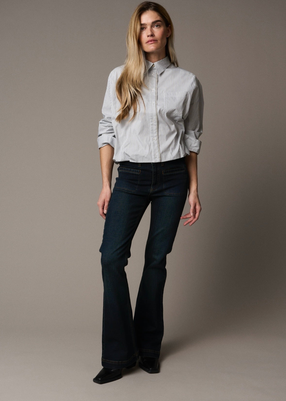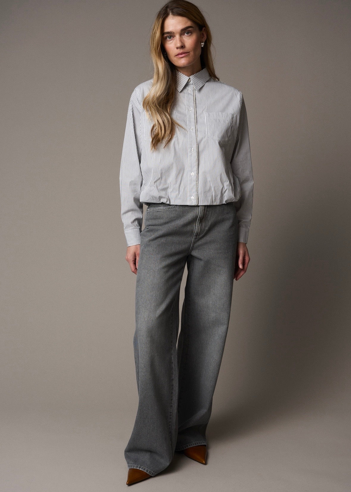 Cool småstribet skjorte fra Pieszak med skjult elastikkant nederst, som gør at du slipper for at komme skjorten ned i bukserne. Skjorten har klassisk krave, lange ærmer og en fin kant langs knaplukningen.