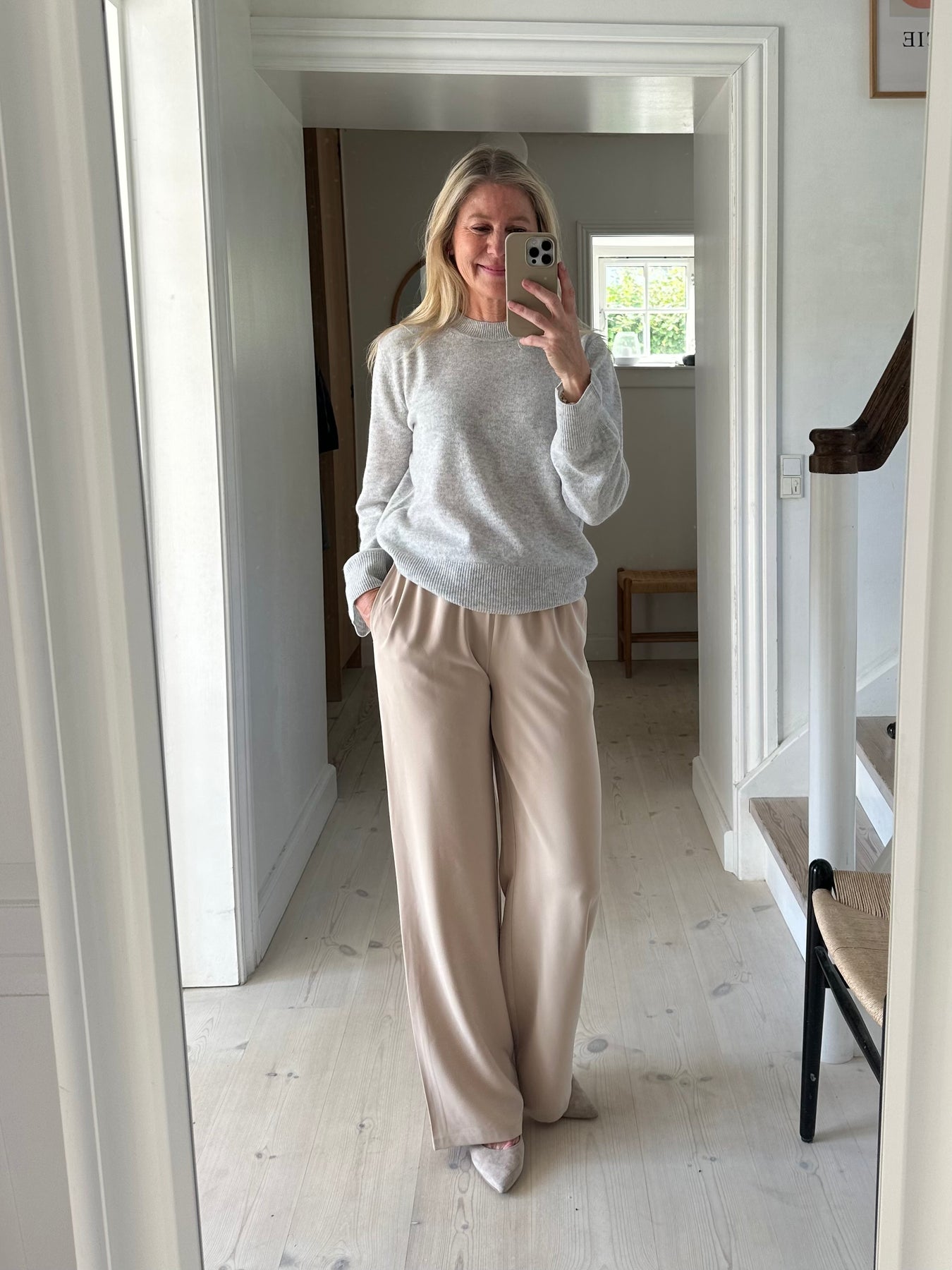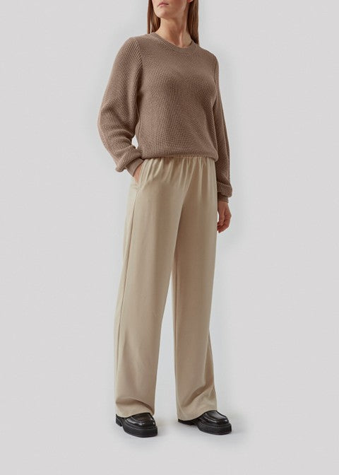 Lækre behagelige bukser fra Modström, der falder flot. Bukserne har elastik i livet, skrålommer i siden og løse ben.