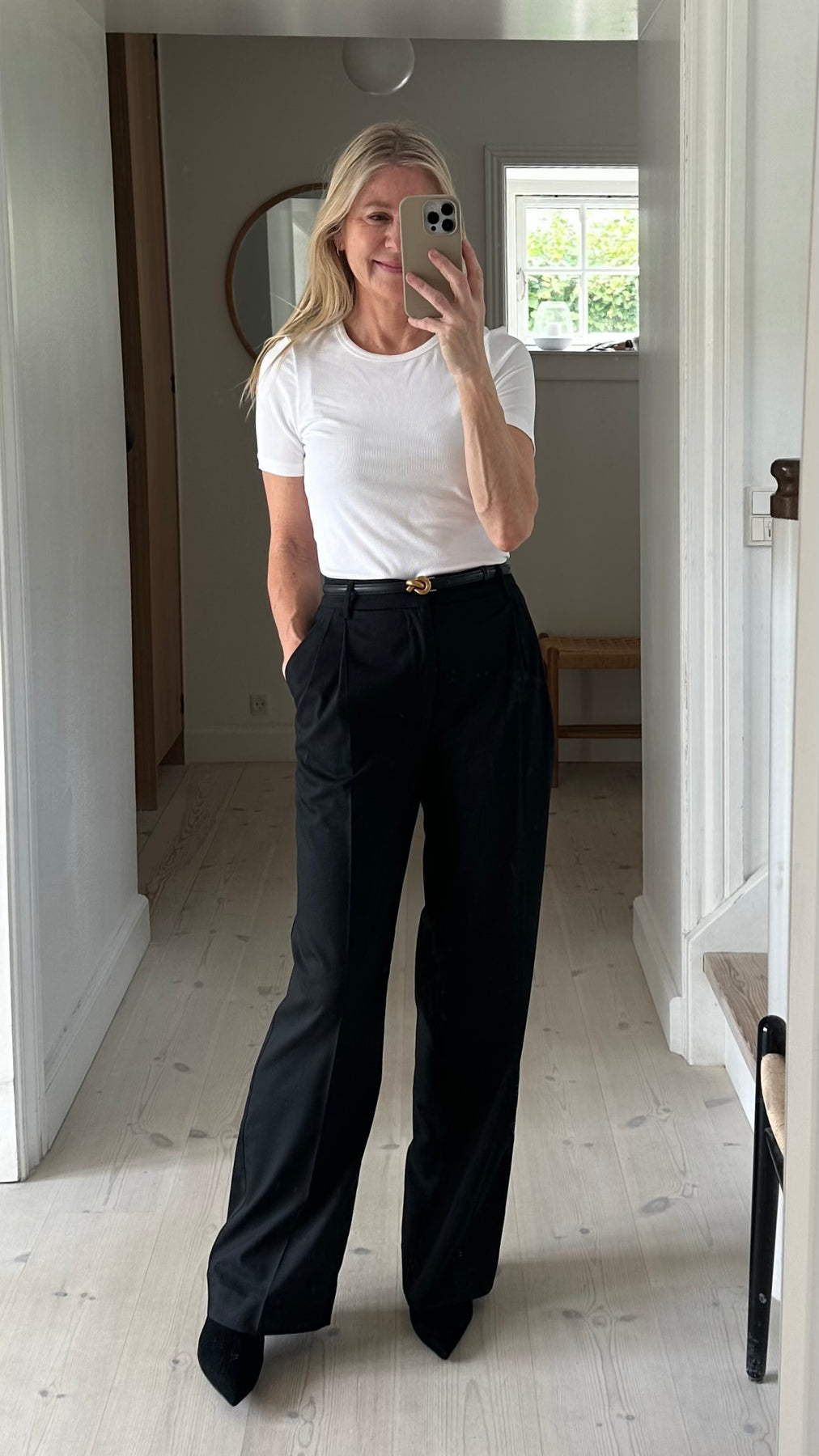 Flot sort bælte fra Plissé med elegant guldspænde.