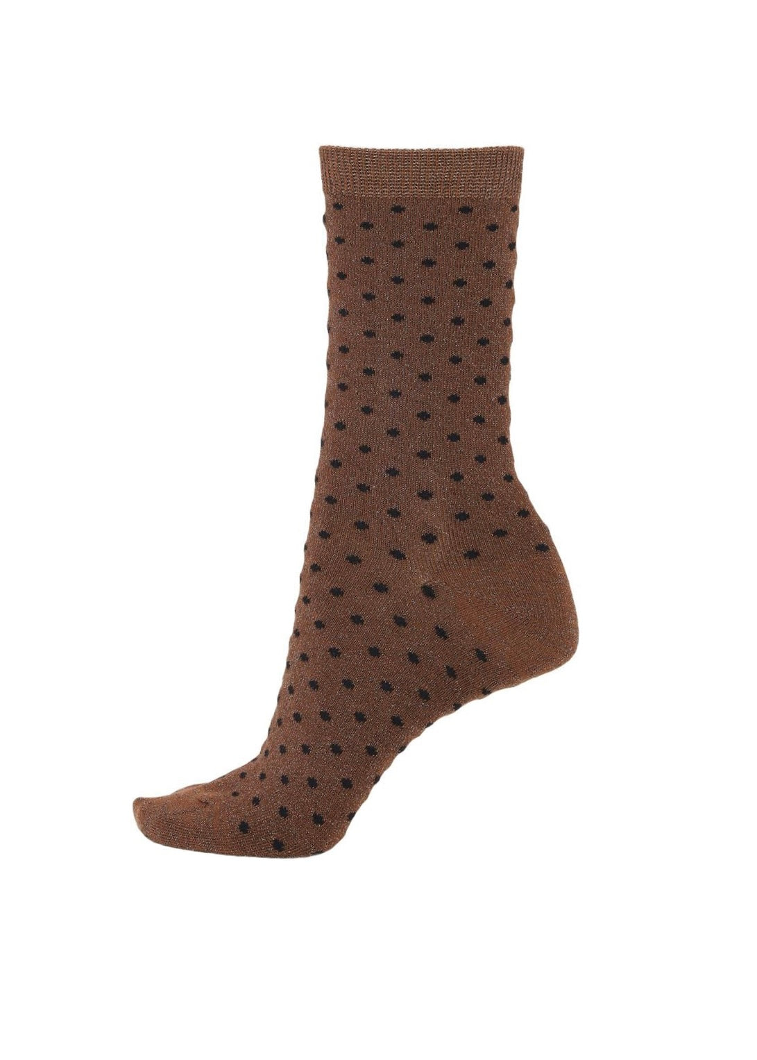 Strømper fra Sui Ava. De er brune med sorte polka prikker.