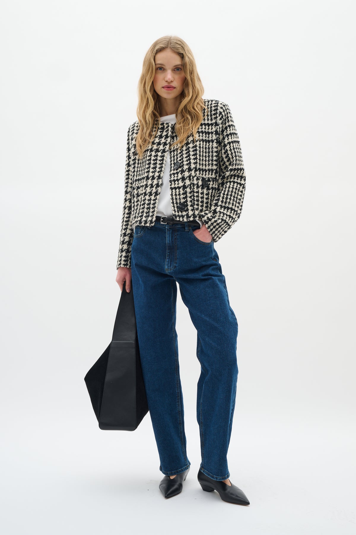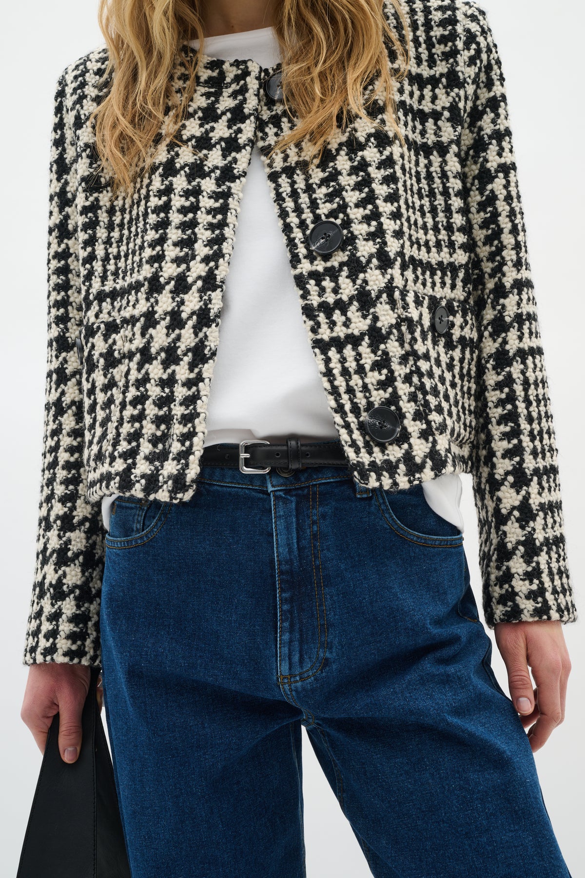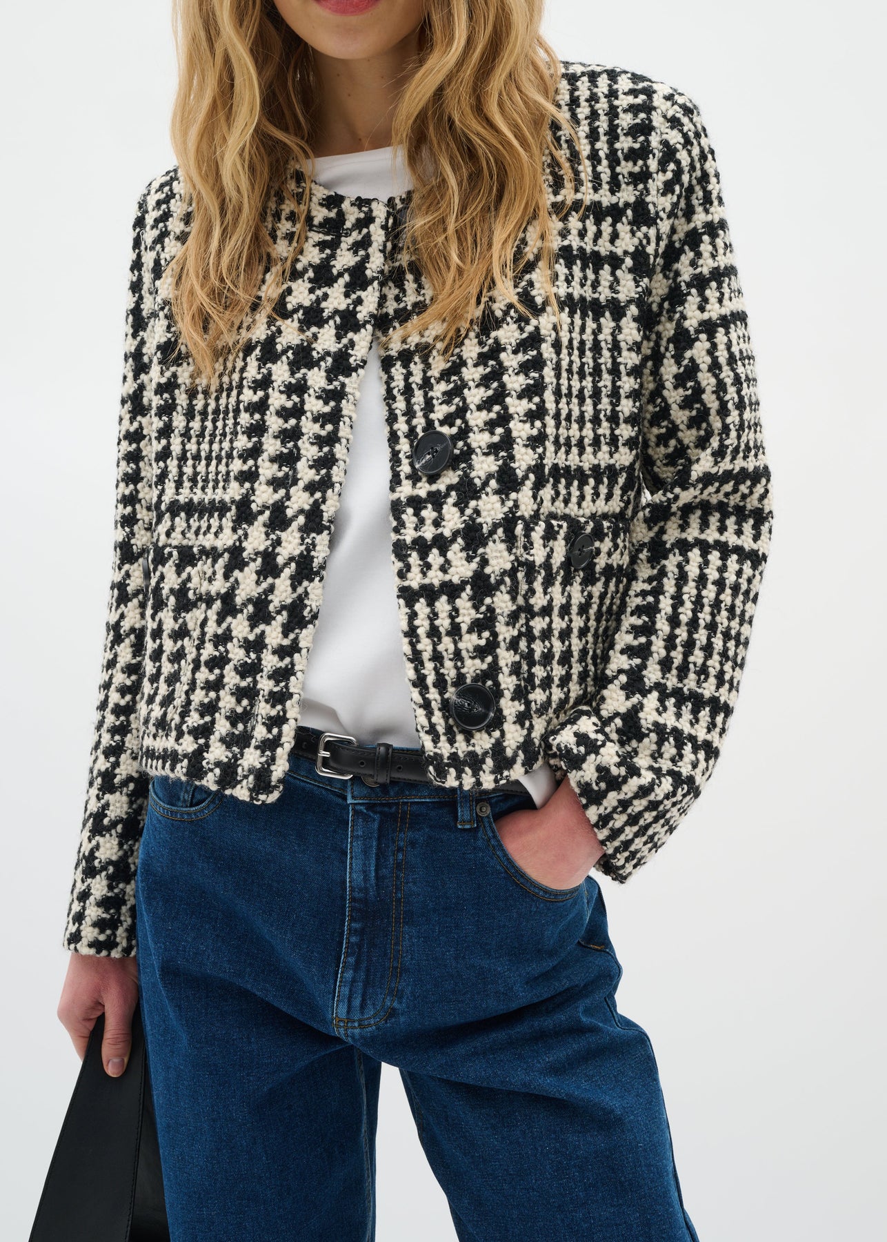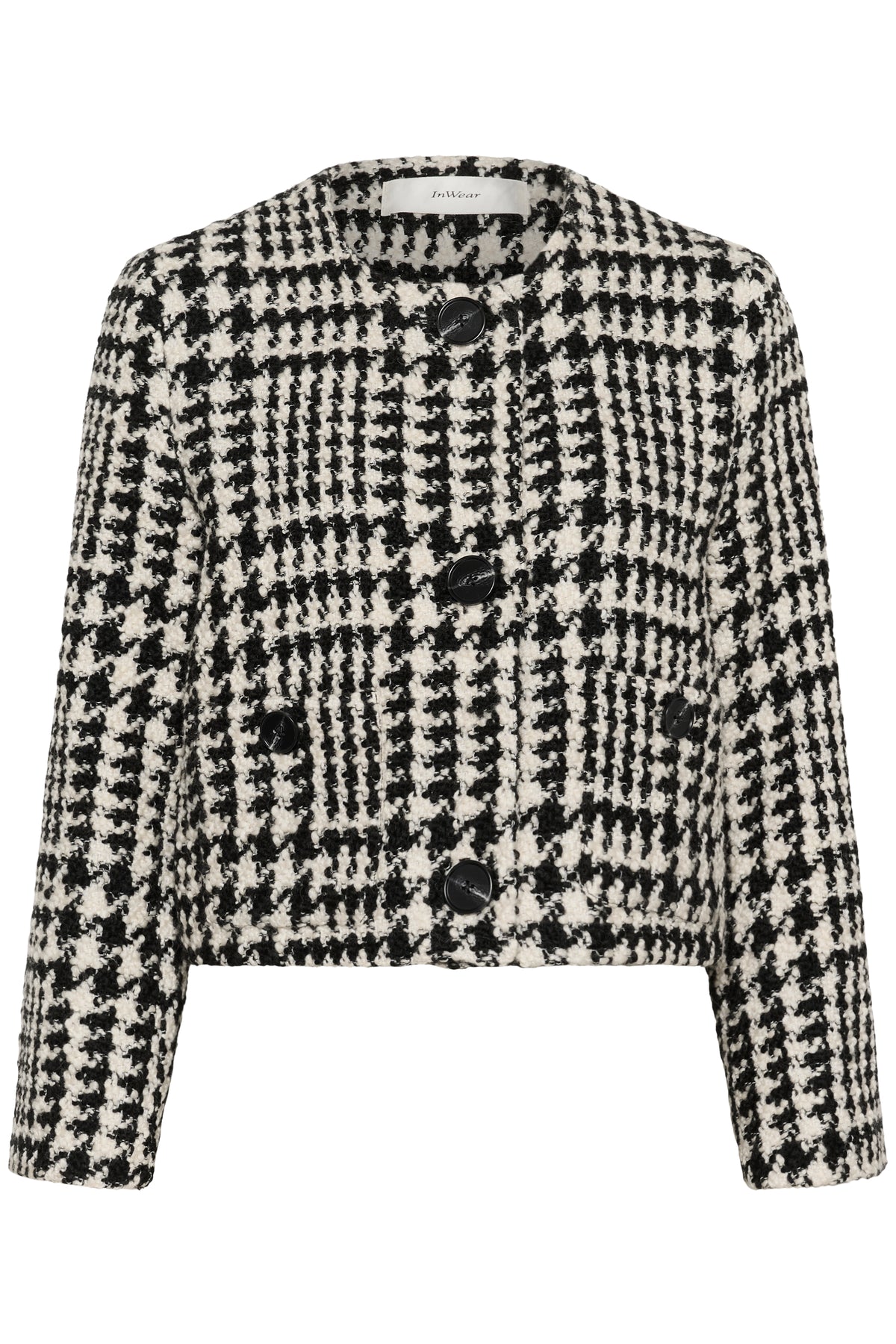 Sort og hvid jakke fra InWear med et ternet mønster. Blazeren har en lidt kort pasform, der giver et elegant og tidløst look.
