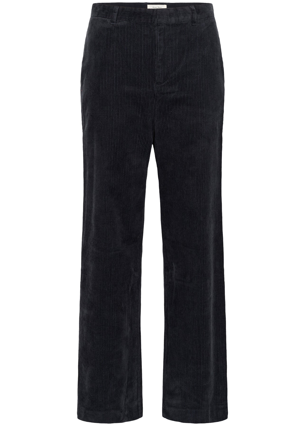 Lækre mørkeblå fløjlsbukser fra Part Two. Bukserne er mellemhøje i livet, har sidelommer, paspolerede baglommer og brede ben.