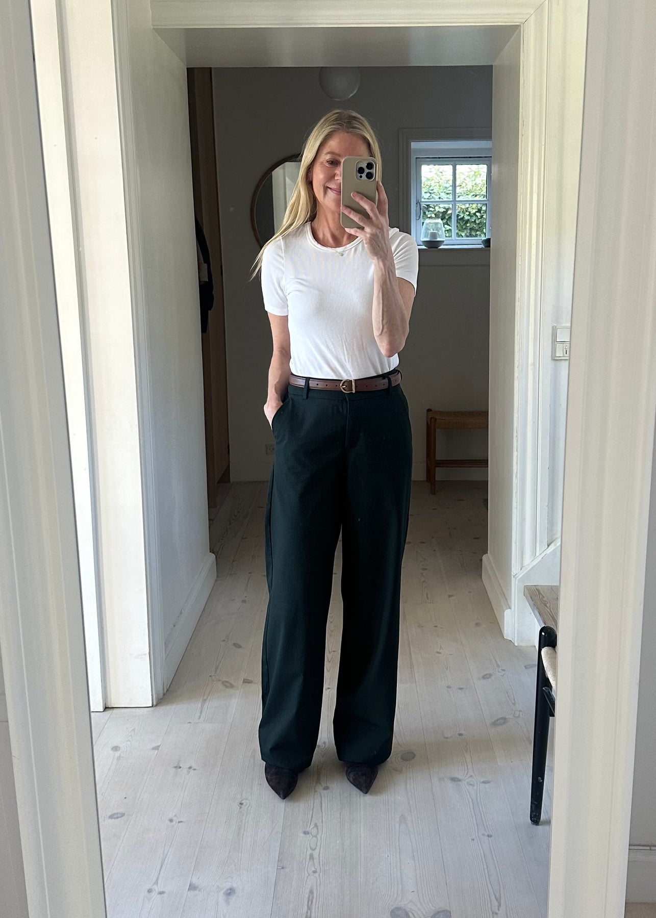 Store i størrelsen. Christina er 165 cm og har str 25 på.
