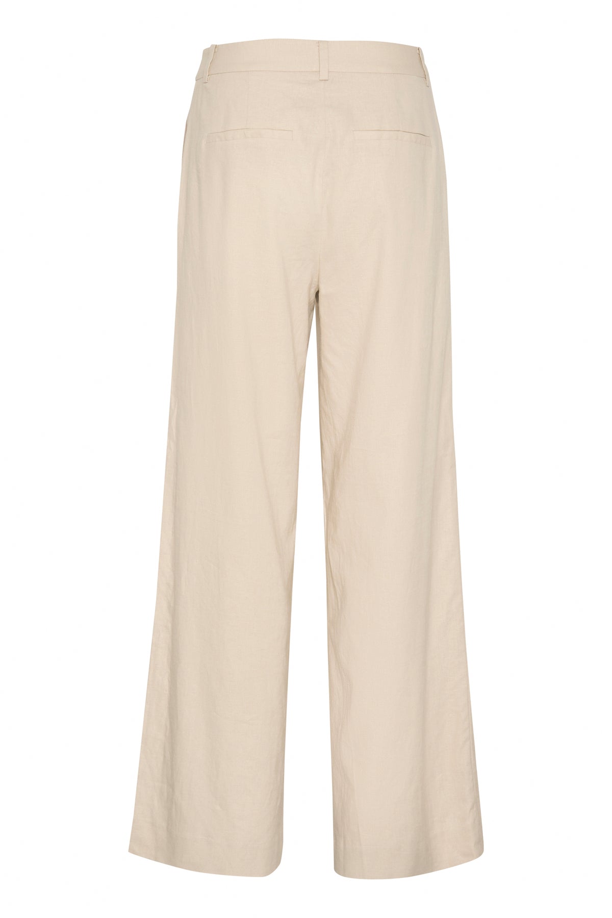 Fine hørbukser fra Gestuz. Bukserne er mellemhøje i taljen, brede i benene og har læg foran.