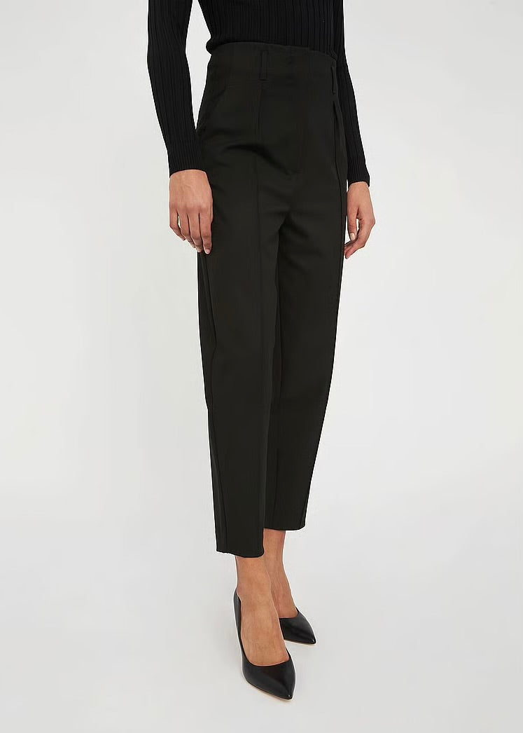 Elegante sorte bukser fra Five Units. De er højtaljede og med læg fra hofterne og ned, designet til at fremhæve din talje og hofter og elegant definere dine ben. De er designet i København og lavet af specialister i Tyrkiet.