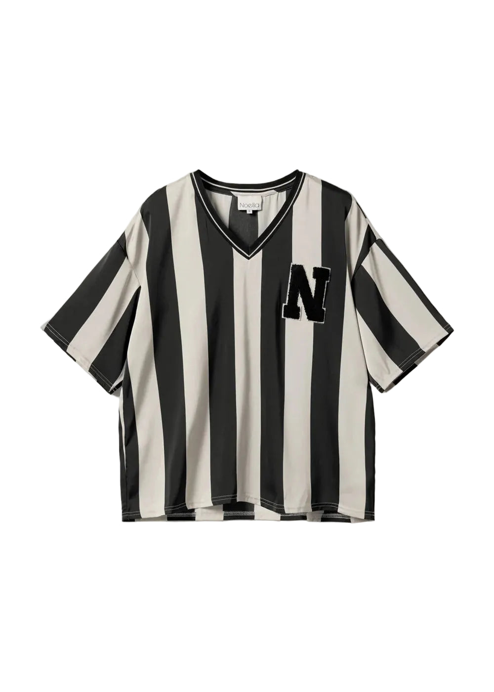 Sporty oversize t-shirt i sort og hvid fra Noella. T-shirten har en løs pasform, korte ærmer og v-hals.