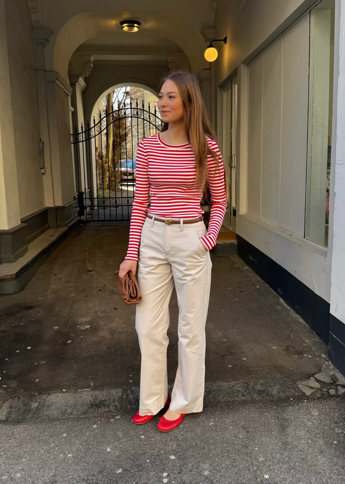 Klassisk stribet bluse fra Lollys Laundry i blød bomuld og elastan. Blusen har rund hals, lange ærmer og en lige pasform.